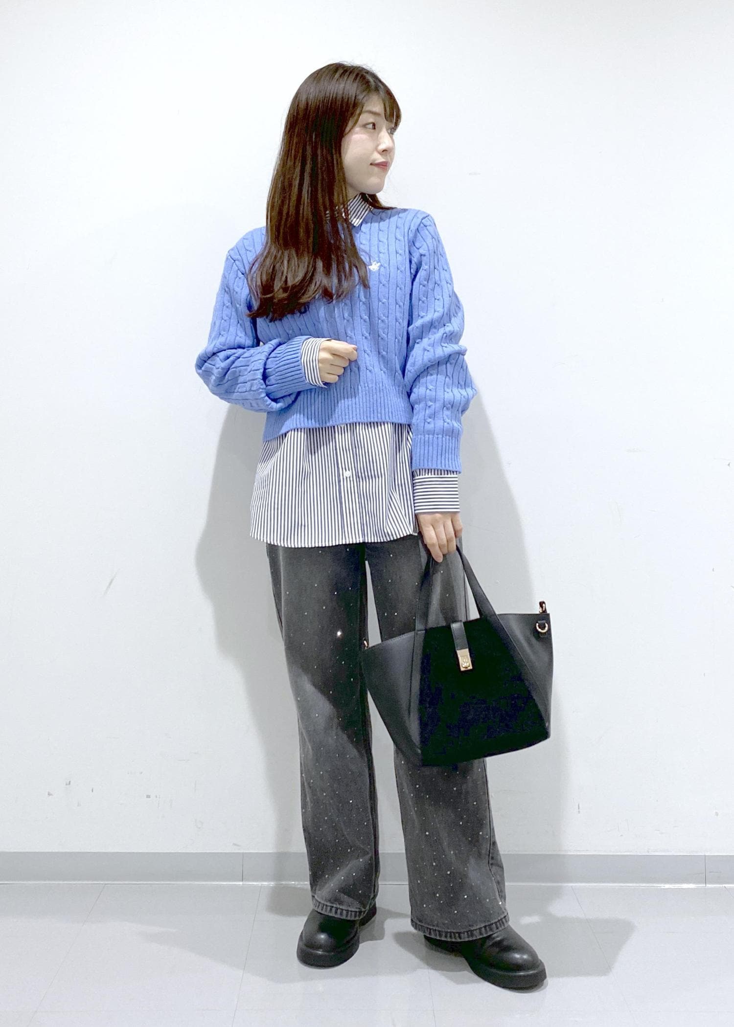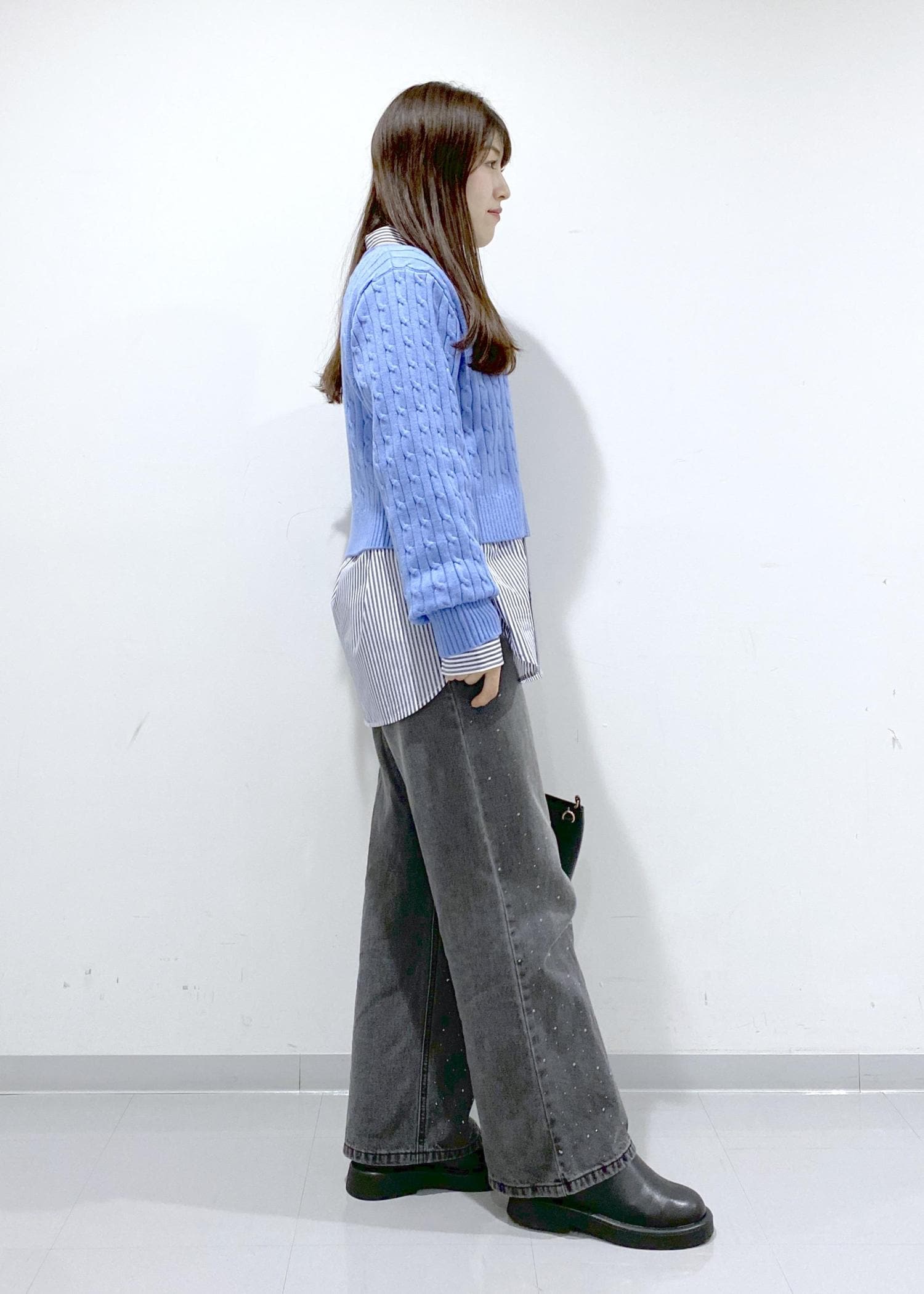 低身長の方は、厚底やヒールのある靴と合わせていただくとバランスが良さそうです。