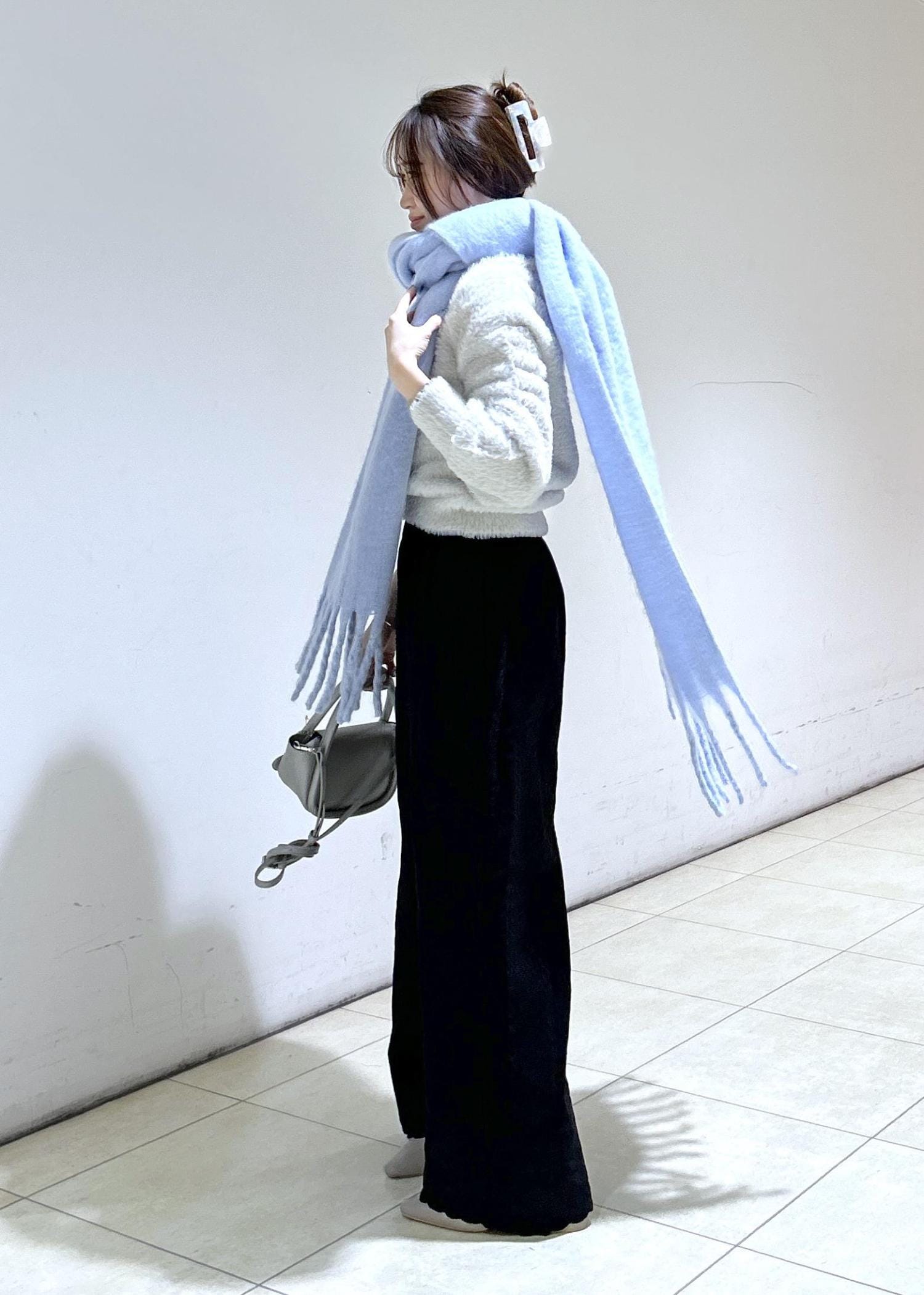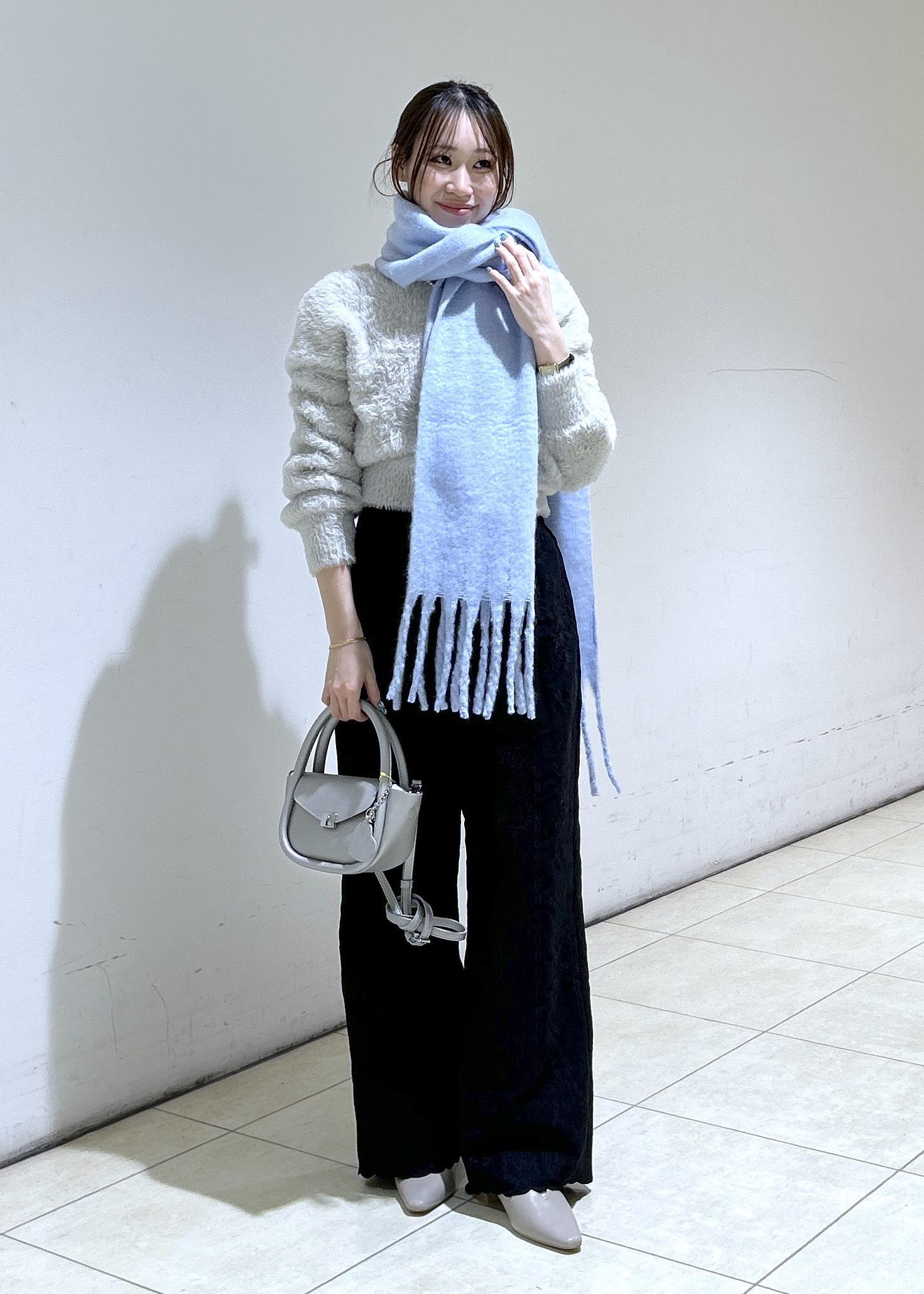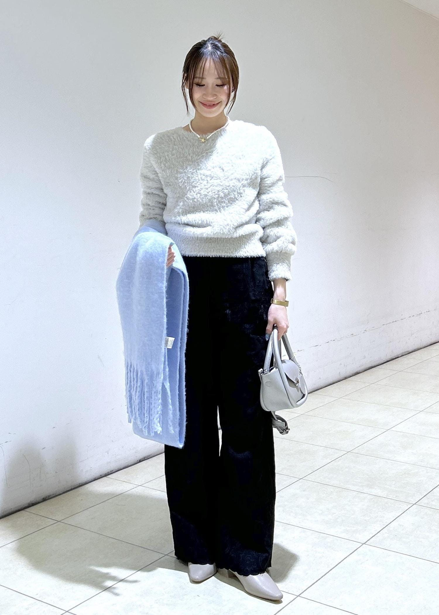 シャギーニットにワイドパンツを合わせて大人キレイメなスタイリングにしました。