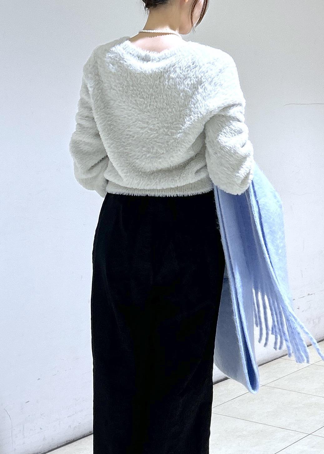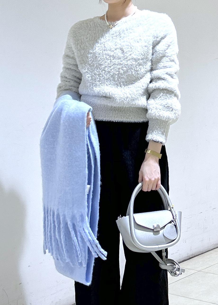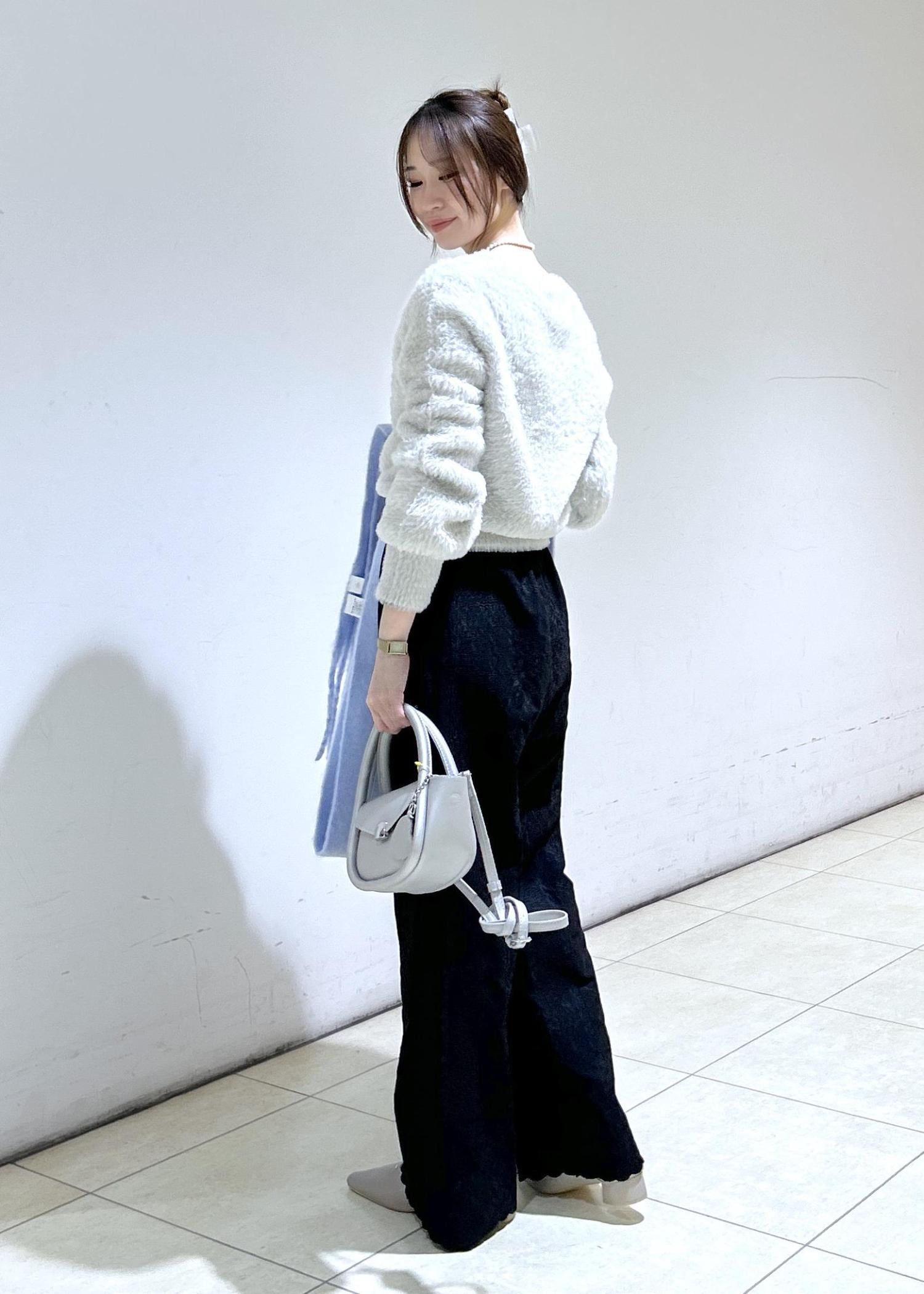 シャギーニットにワイドパンツを合わせて大人キレイメなスタイリングにしました。