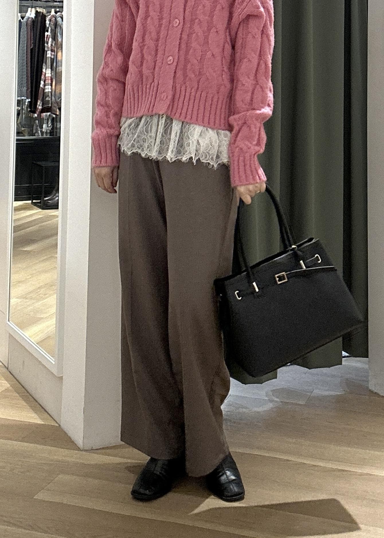 レディハンサムシリーズ ウールライクウエストタックセミワイドパンツ/セットアップ対応