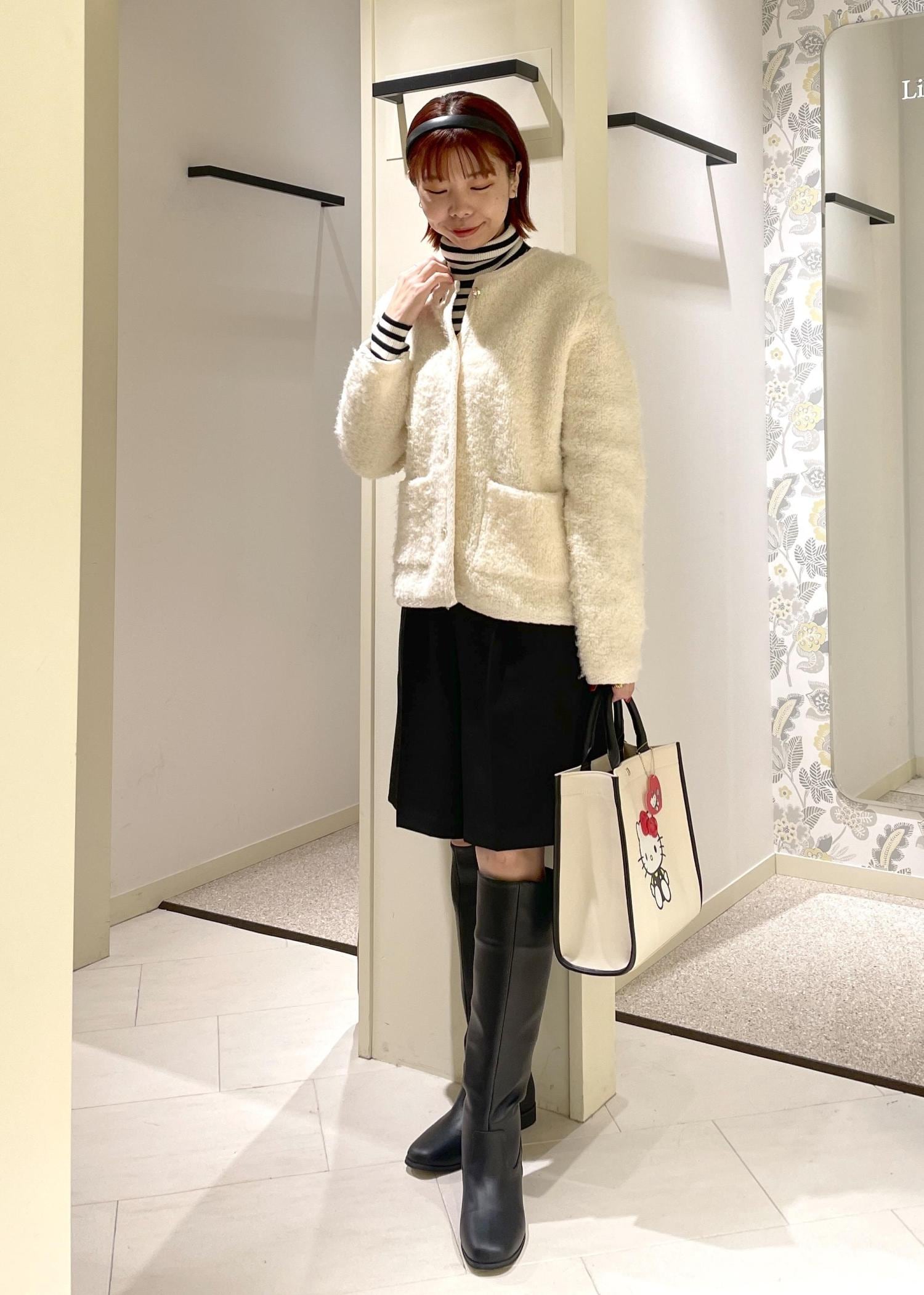 バッグが引き立つようにモノトーンでシンプルにスタイリングしてみました。