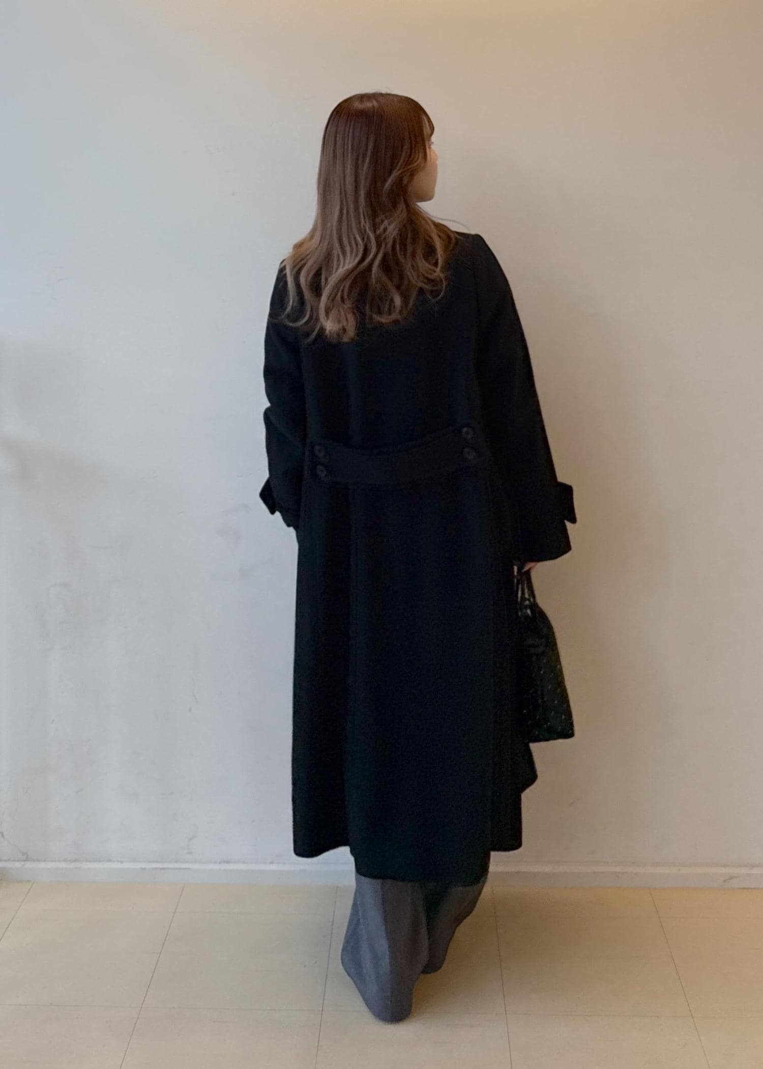 裏地付きのウールも入っているので暖かく着用でき、どのコーデにも羽織りやすい万能なコートです!