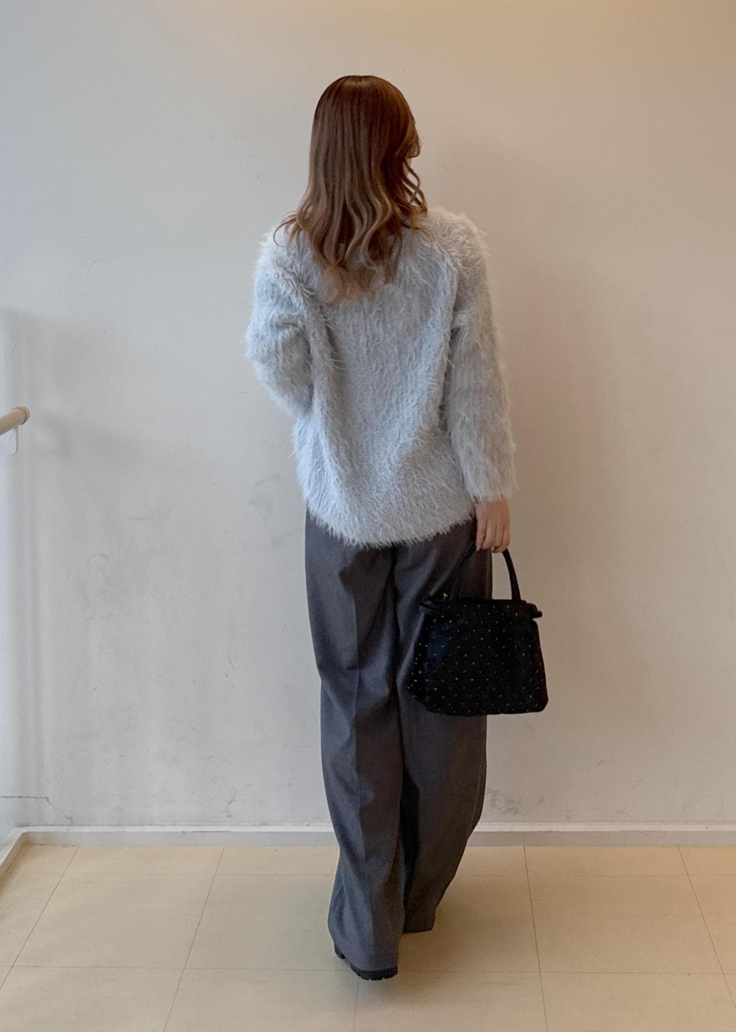 シンプルになりすぎないよう表情があるフェザーニットで合わせ、オシャレ感をupしてみました!