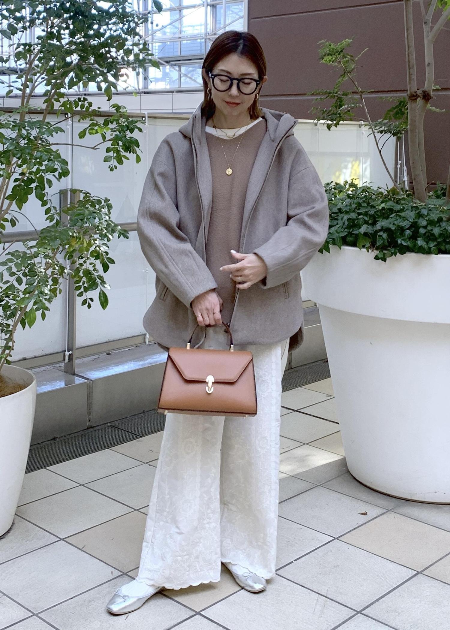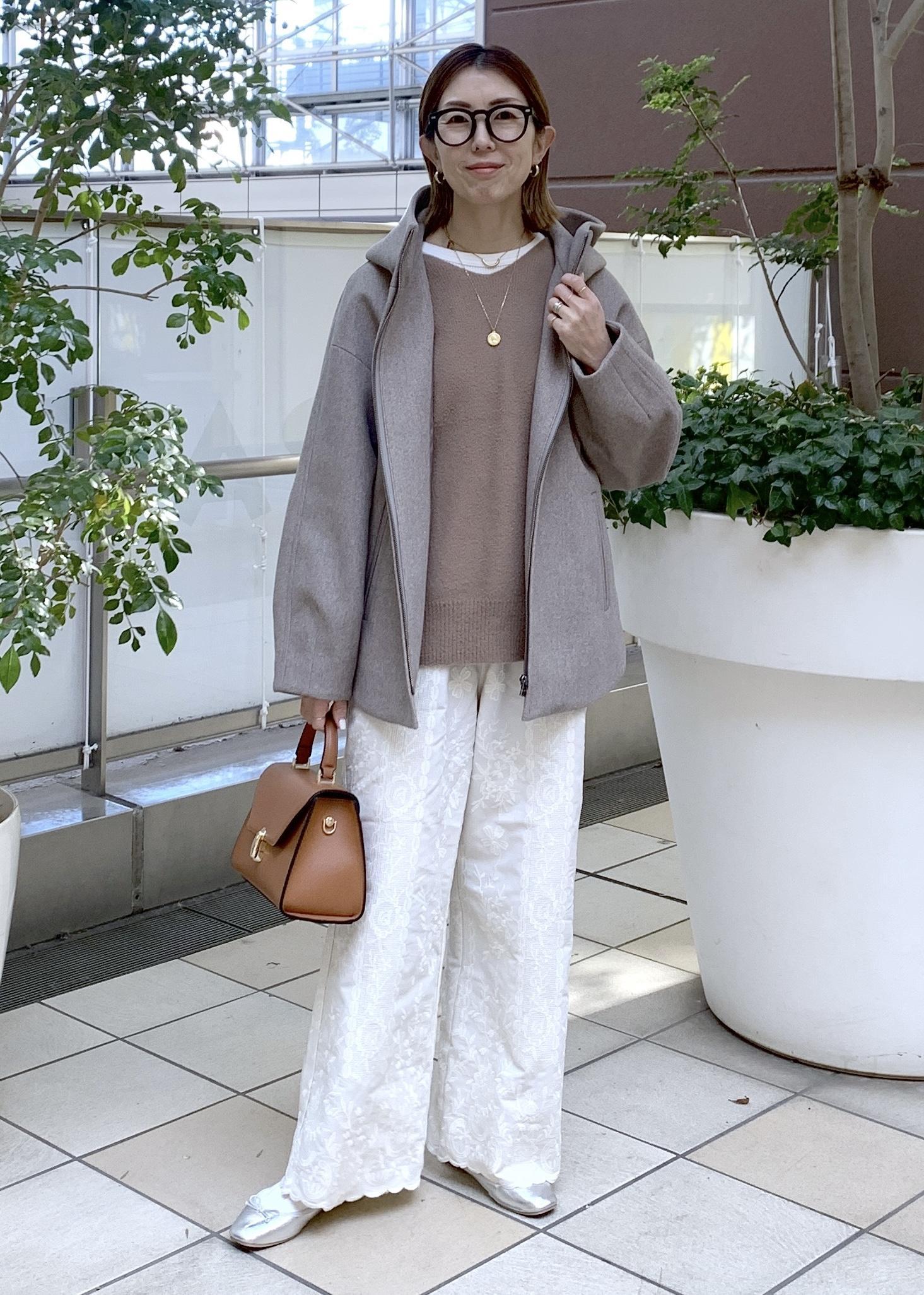 フーディコートの大人カジュアルスタイリング
