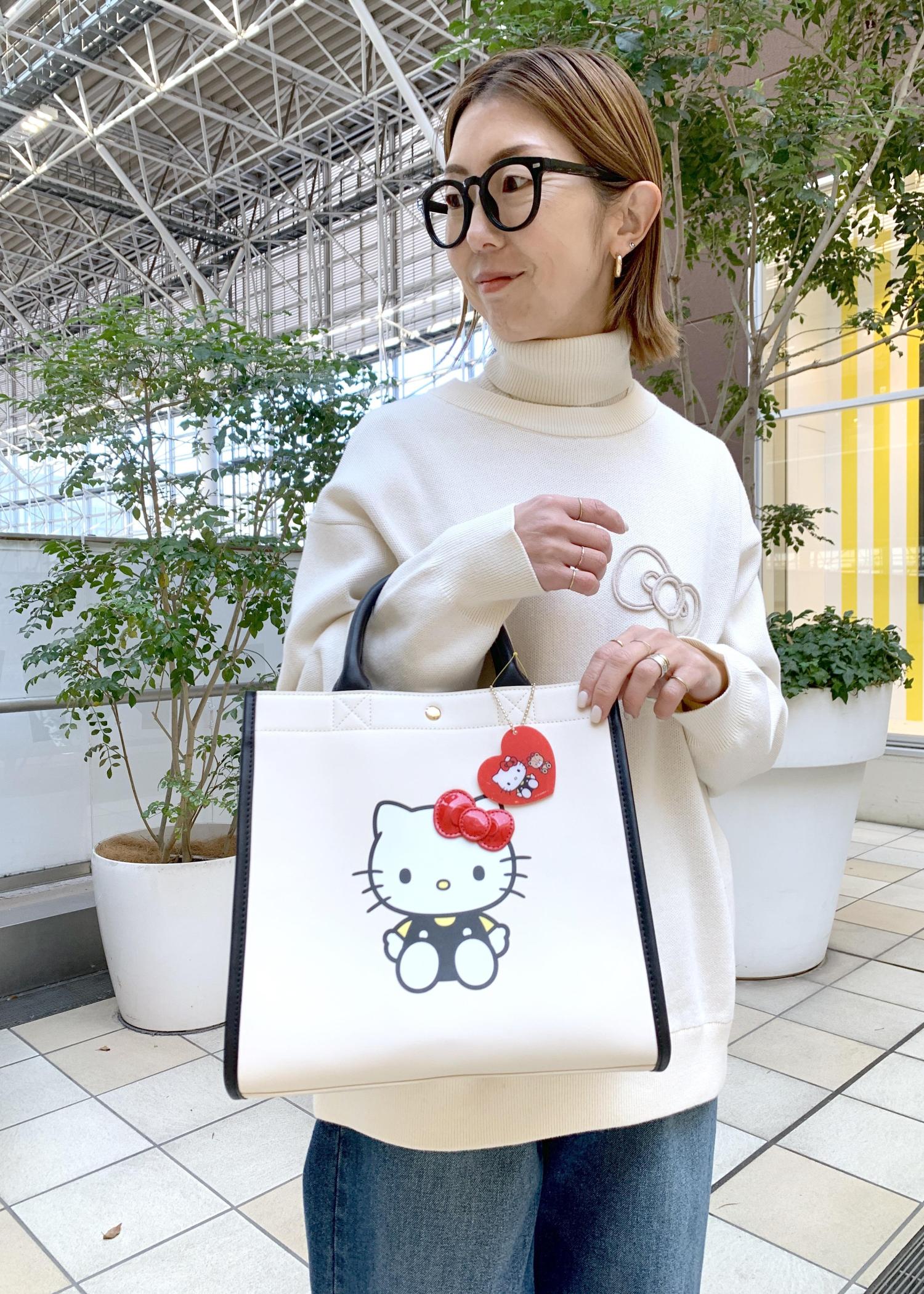 NEW! 予約ROPÉ PICNIC PASSAGE【ROPE' PICNIC×ハローキティ】アクリルチャーム付きトートバッグキナリ / F¥5,489レビュー本体は上品なスムース素材で、リボンやハート部分は光沢のあるエナメル素材。