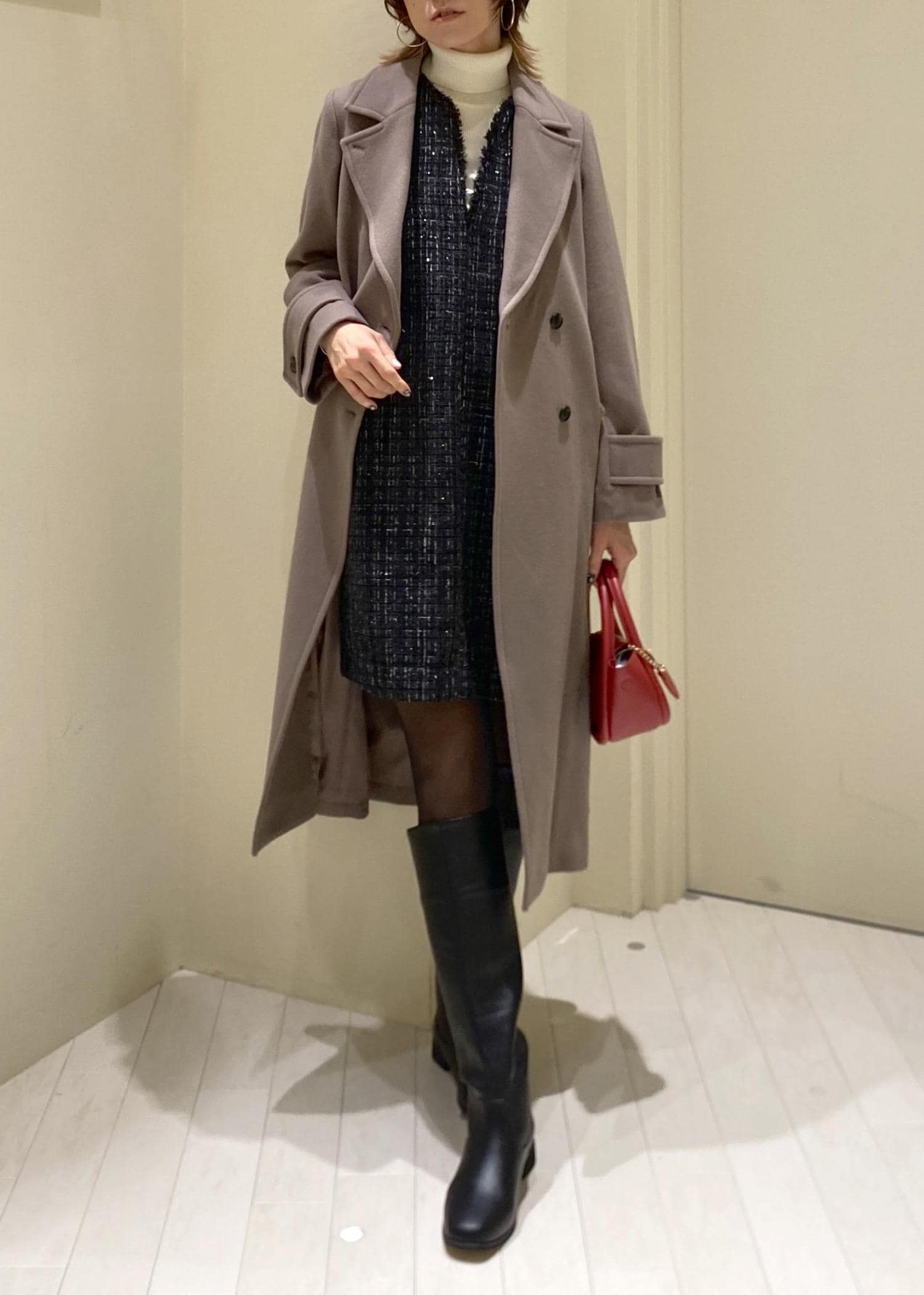 ROPÉ PICNICJAPAN FABRIC ダブルチェスターコート/一部WEB限定カラーベージュ系 / F¥19,800レビュー柔らかく肌触りの良いウール混コート。