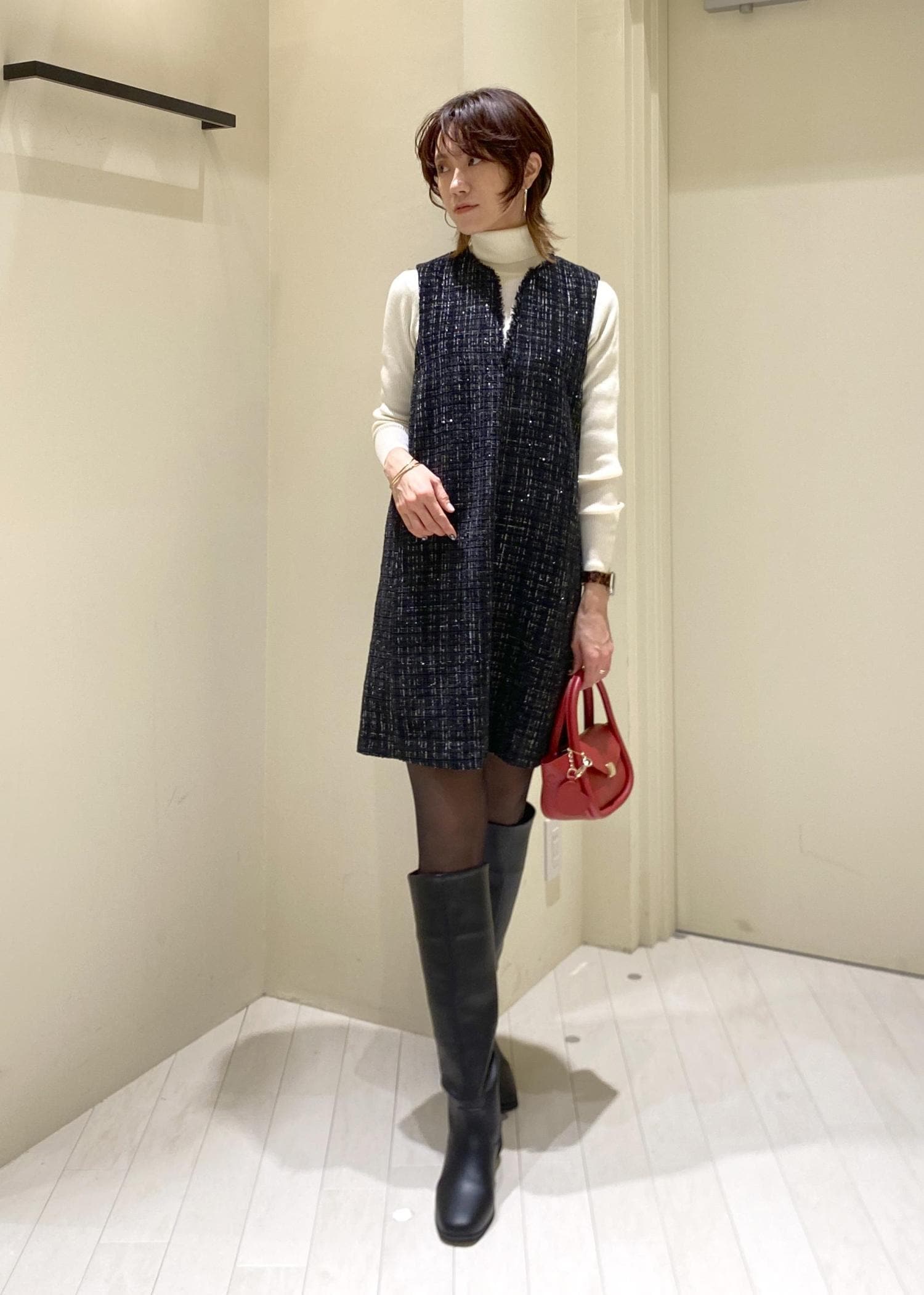 ROPÉ PICNICキーネックツイードジャンパースカート ワンピース/着丈が選べるブラック / M¥7,198レビューラメツイードで華やかな素材感。