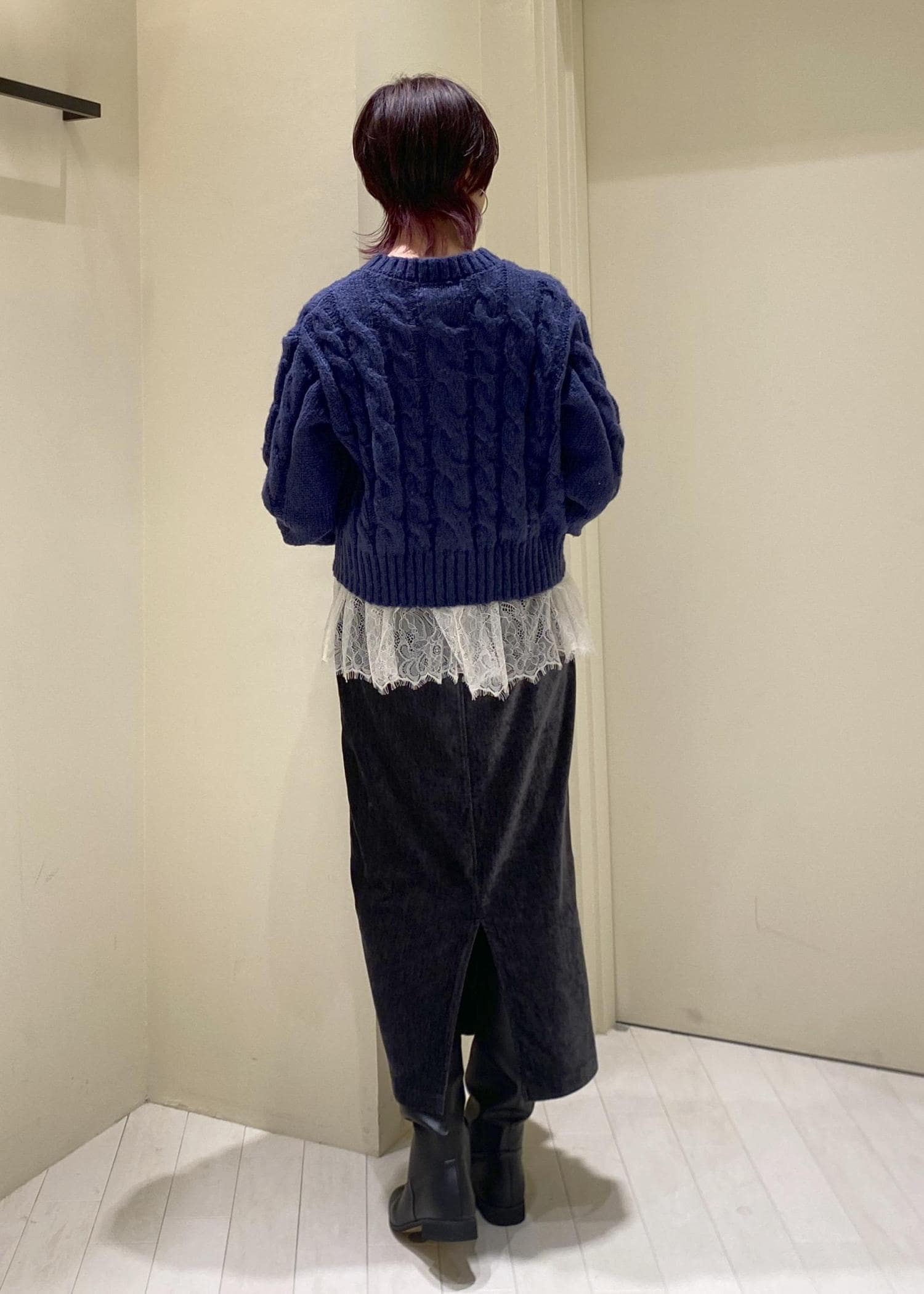 身頃はゆったりとレイヤードスタイルがしやすいです。着丈は短めで、ハイウエスト・ワイドボトムにも合わせやすいです。 -