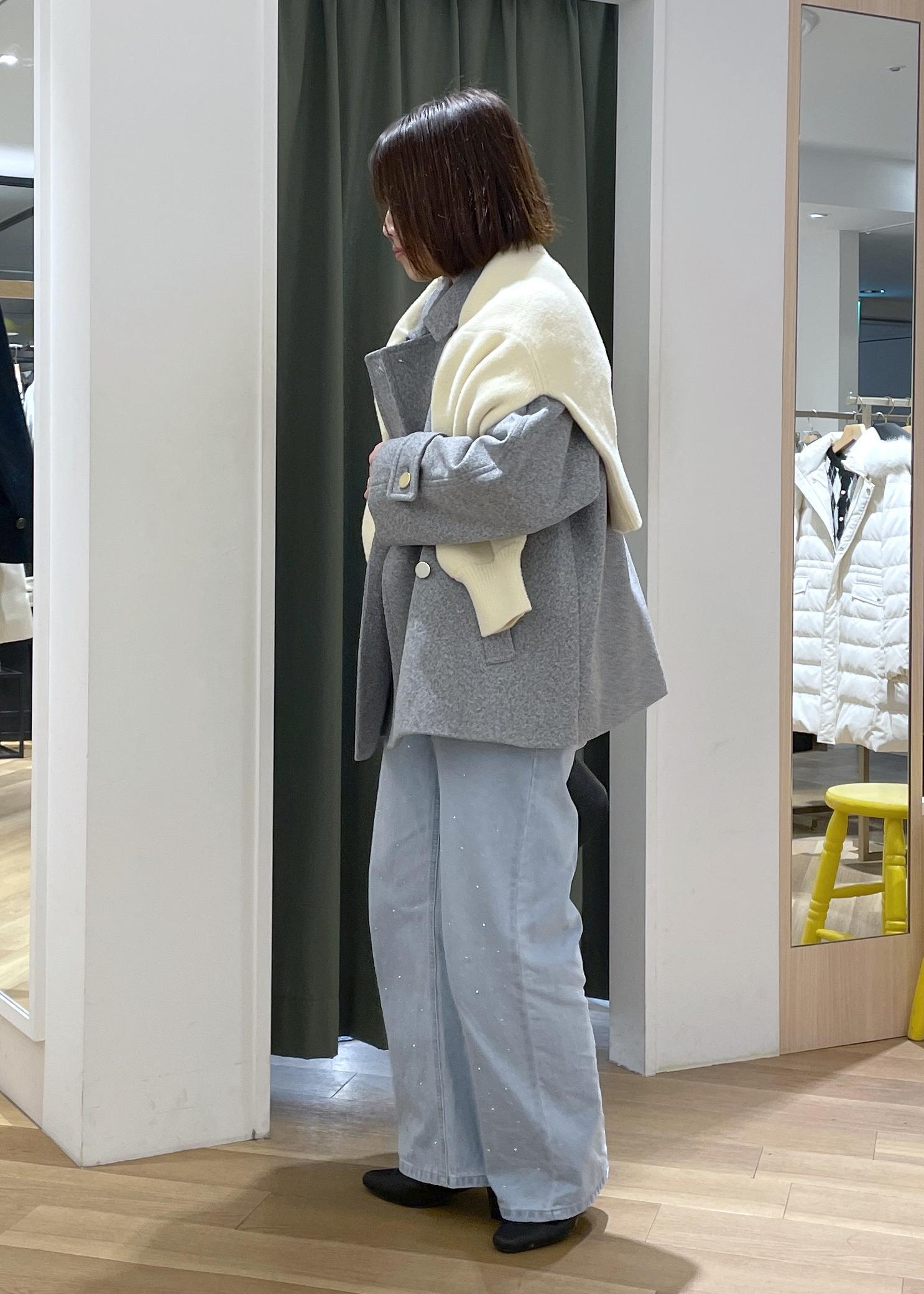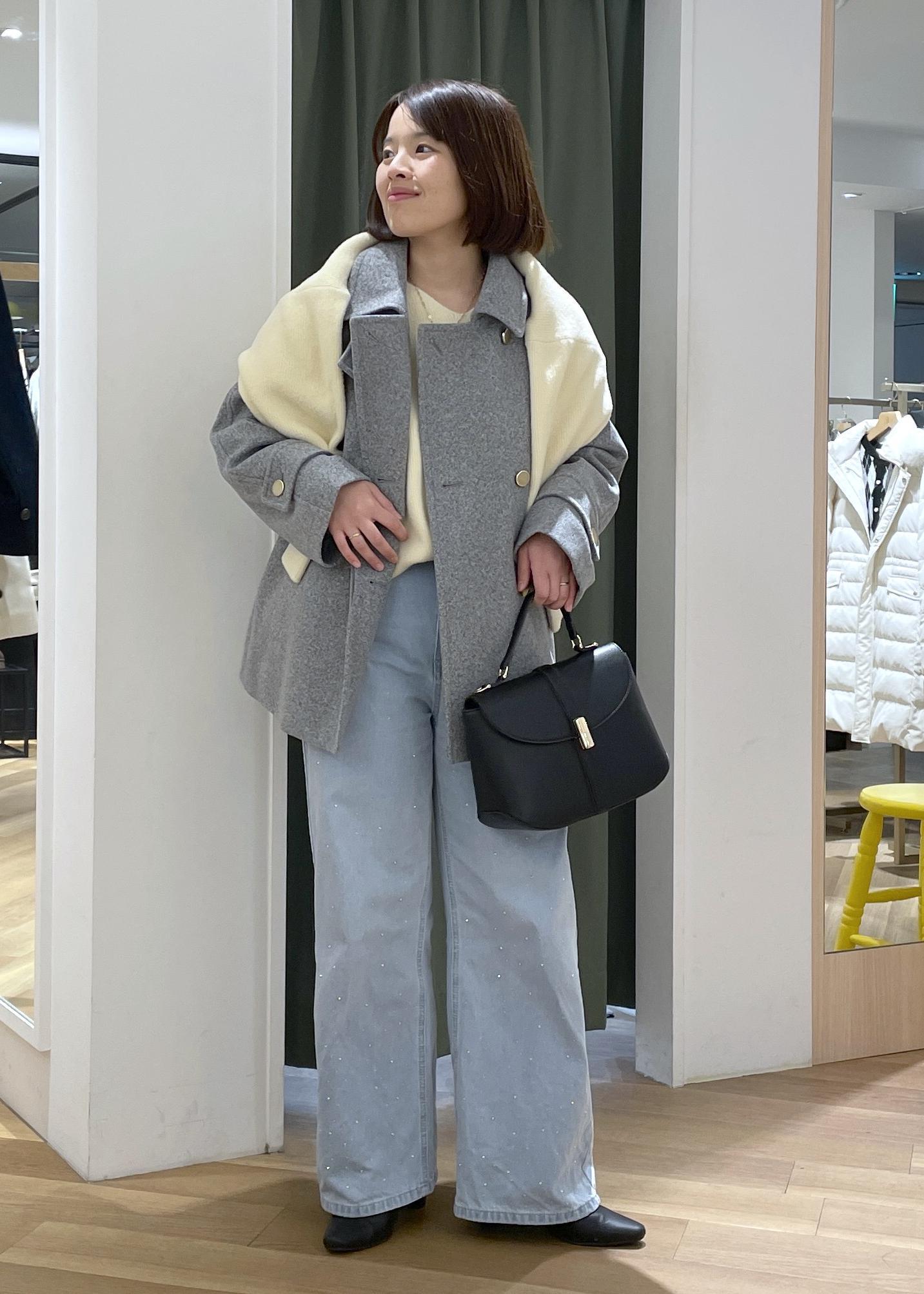 冬アウターも柔らかなパステルカラーを合わせると、少し春を感じることができるコーデで合わせられます◎