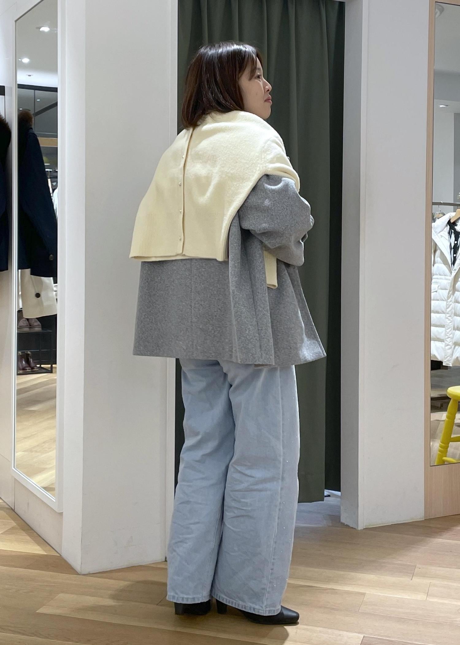 ROPÉ PICNICジャージーメルトンシリーズ 金ボタンミドル丈コート/リンクコーデライトグレー / F¥7,692レビュー柔らかく軽い羽織り心地で、とても着やすいアウターです。ゆったりしたサイズ感なので、厚手のニットの上からでも羽織れます。また寒さが厳しい時期はインナーダウンを仕込んで着用するのもおすすめです。着丈はヒップが隠れるくらいの長さで、パンツにもスカートにも合わせやすいです。