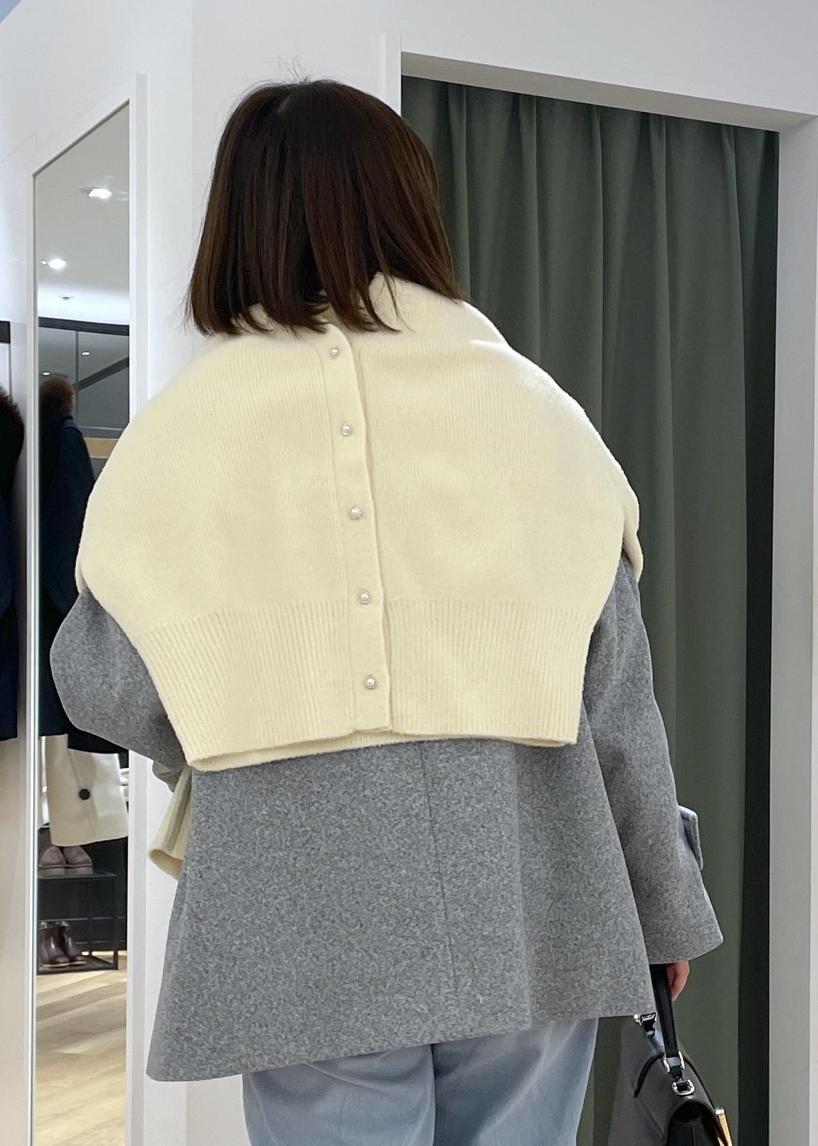 グレーのミドル丈コートに、イエローのニットを合わせた春先取りコーデです!