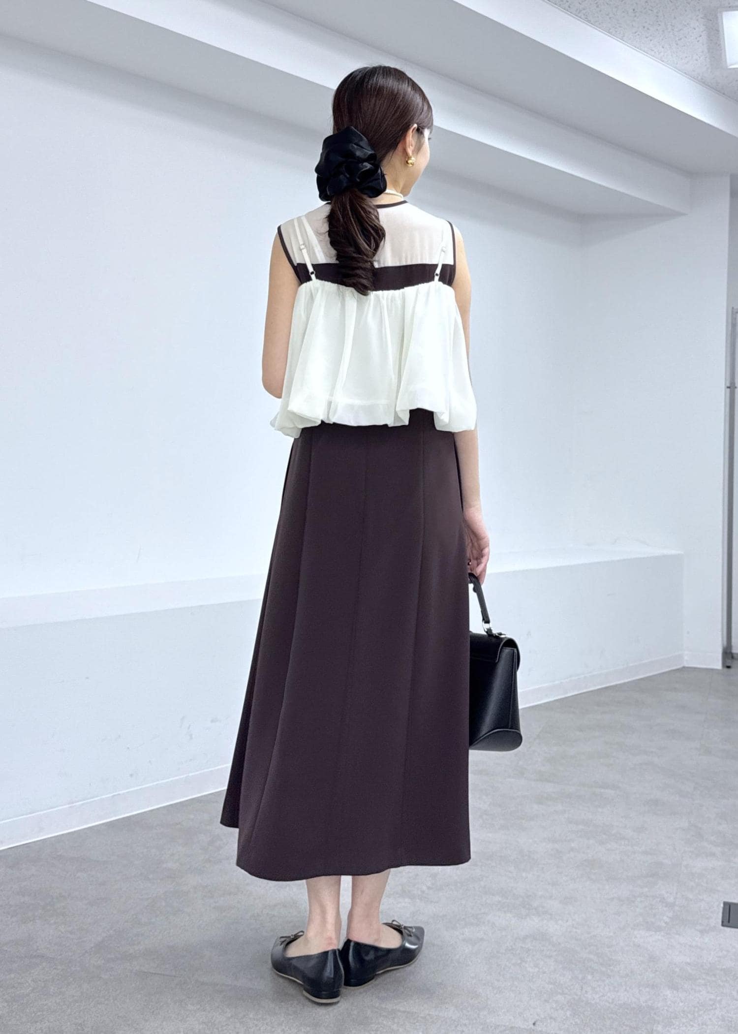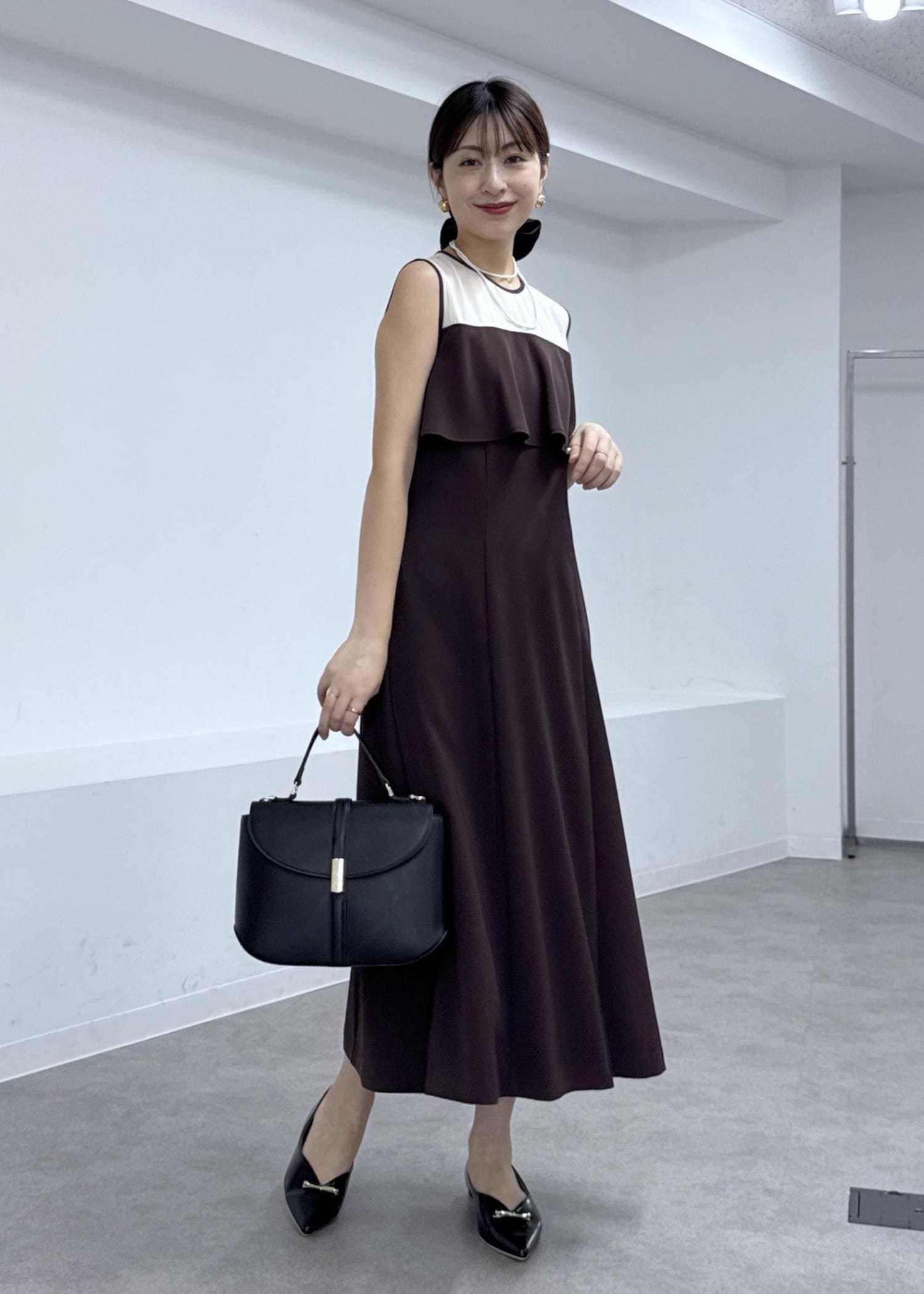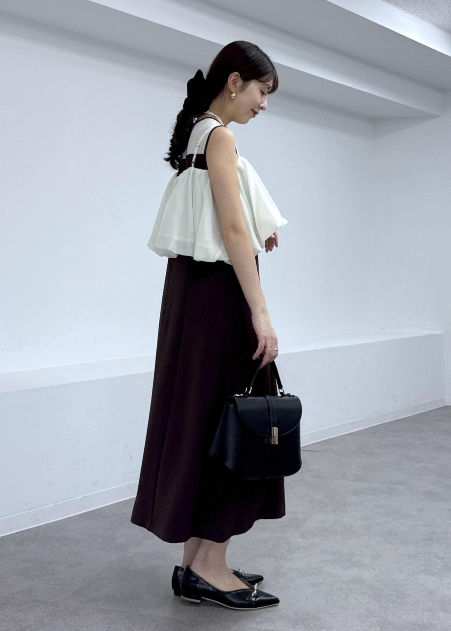 NEW!ROPÉ PICNIC【Mon E’toile/モンエトワール】バルーンビスチェセットワンピース/マルチWAYダークブラウン / M¥13,200レビューバックファスナーで下から着られるのでヘアメイク後のお着替えもし易く、安心◎着丈はすねに掛かる長さ。ビスチェのエアリーなボリューム感がフェミニンさと体型カバーを両立してくれます。
