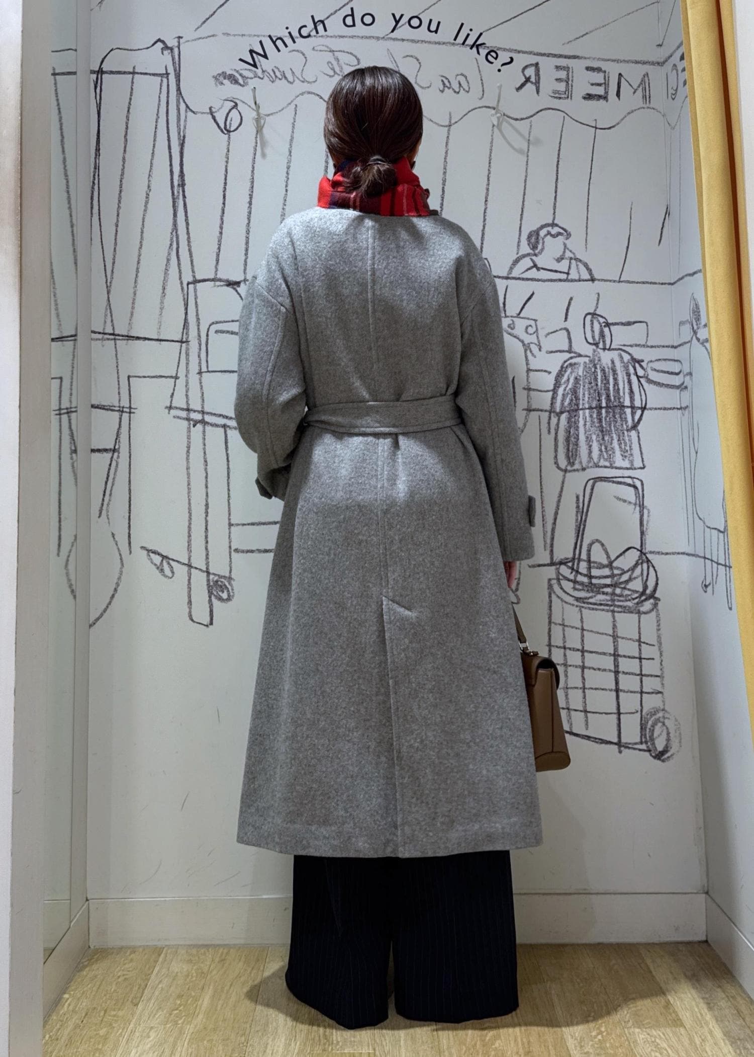 ROPÉ PICNICJAPAN FABRIC スタンドカラーロングコート/一部WEB限定カラーライトグレー / F¥15,840レビュー162㎝ですねに掛かる着丈。柔らかさのある生地なのでロングコートにしては軽い印象。身幅はゆとりがある為ボリュームのあるニットと合わせても問題なさそうです。ウエストベルト付きなので結べばクラシカルな雰囲気で着用可能。