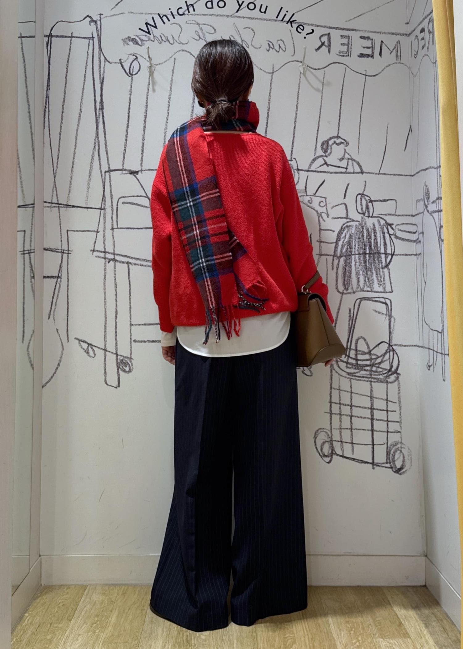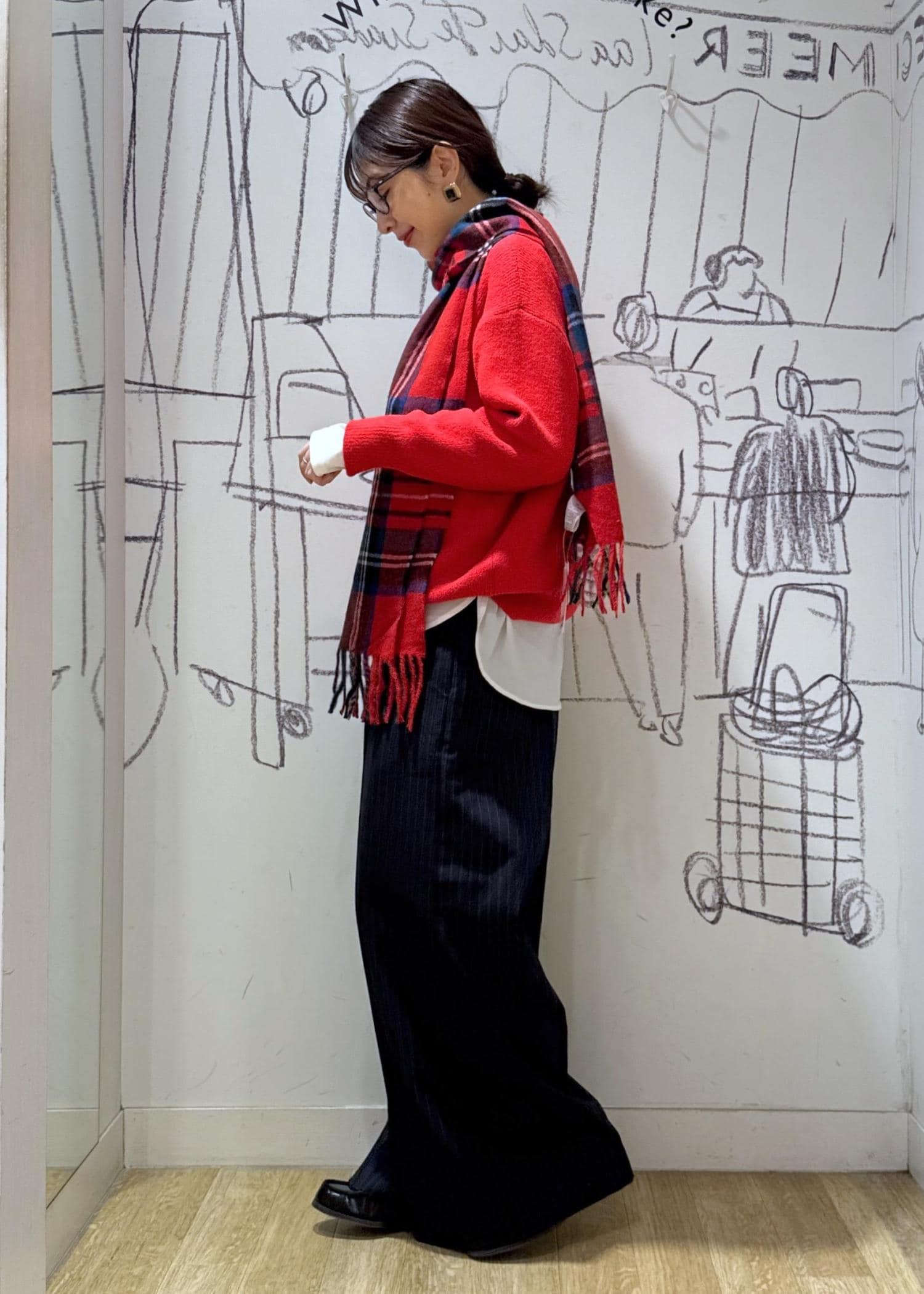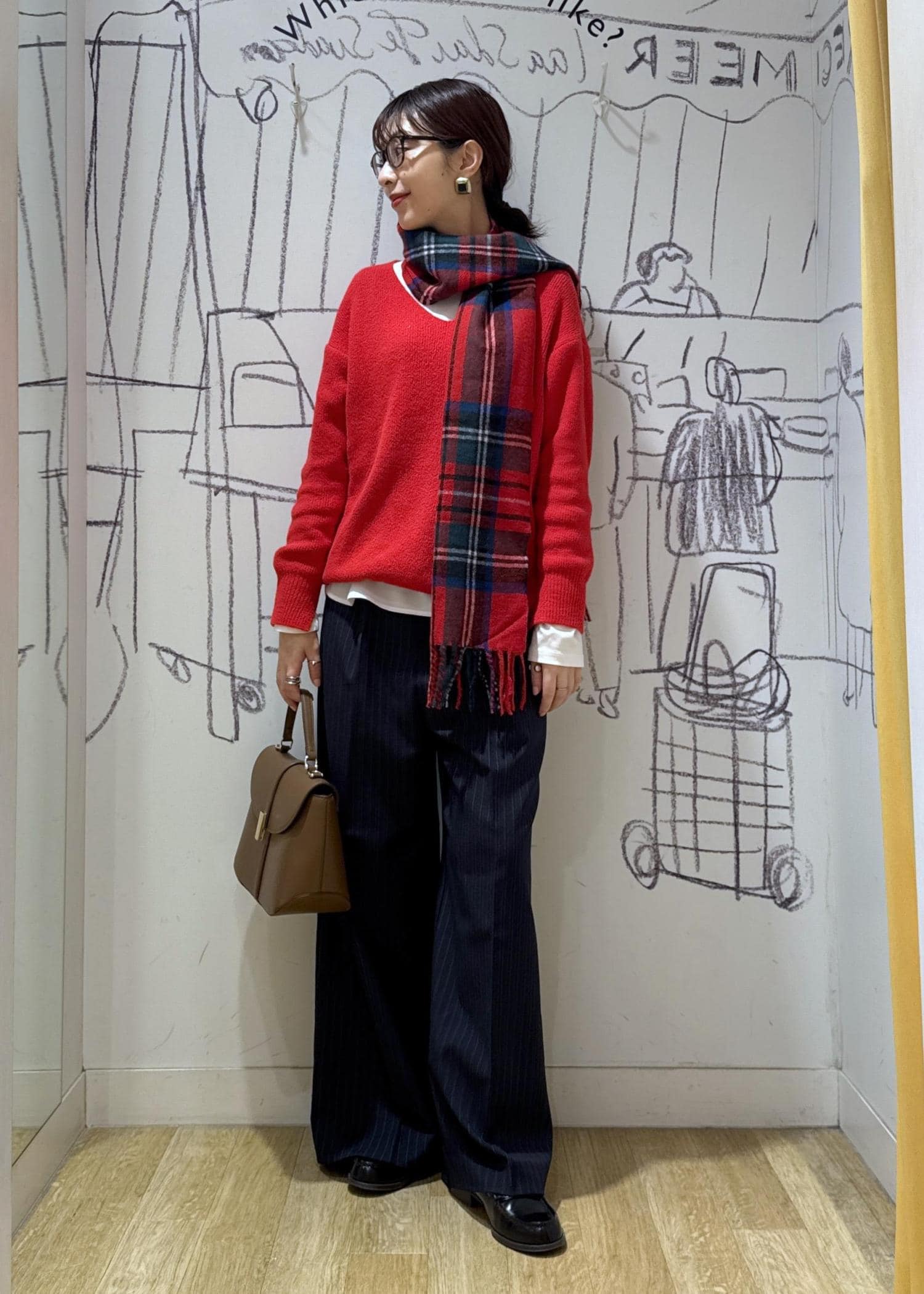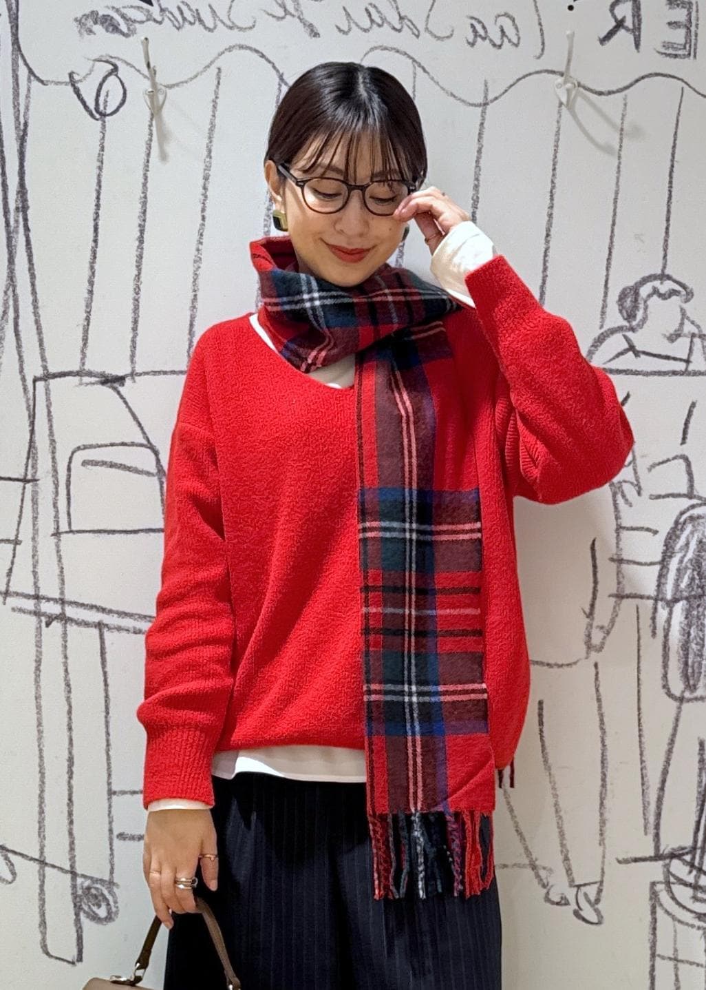 ROPÉ PICNIC PASSAGEチェックマフラーレッド系 / F¥3,289レビュー大判ではないので持ち運びし易く、ちょうどいいボリューム感で巻けます。