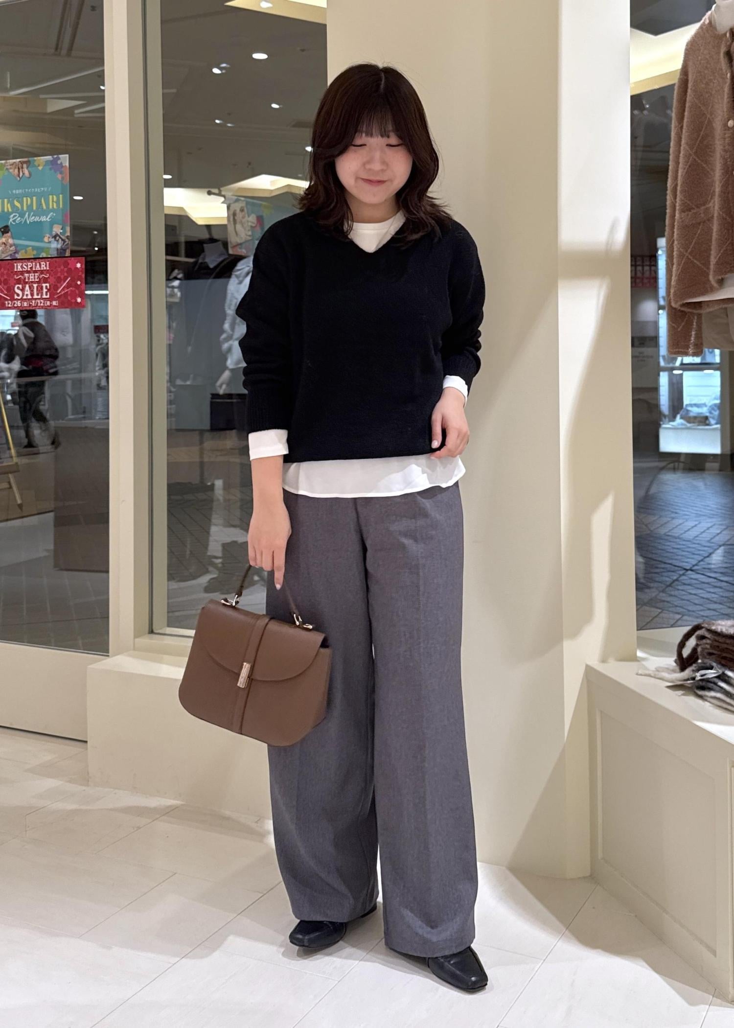 ごわつかない柔らかな生地で、ゆとりはしっかりあるので厚めのニットでも着用可能。