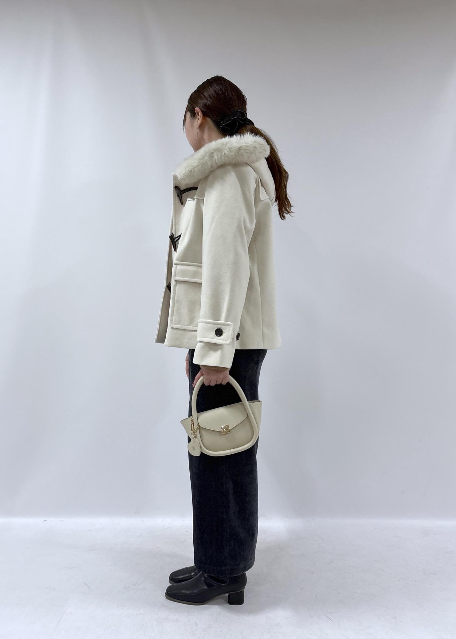 ジャージーメルトンシリーズ ファー付きショートダッフルコート/リンクコーデ