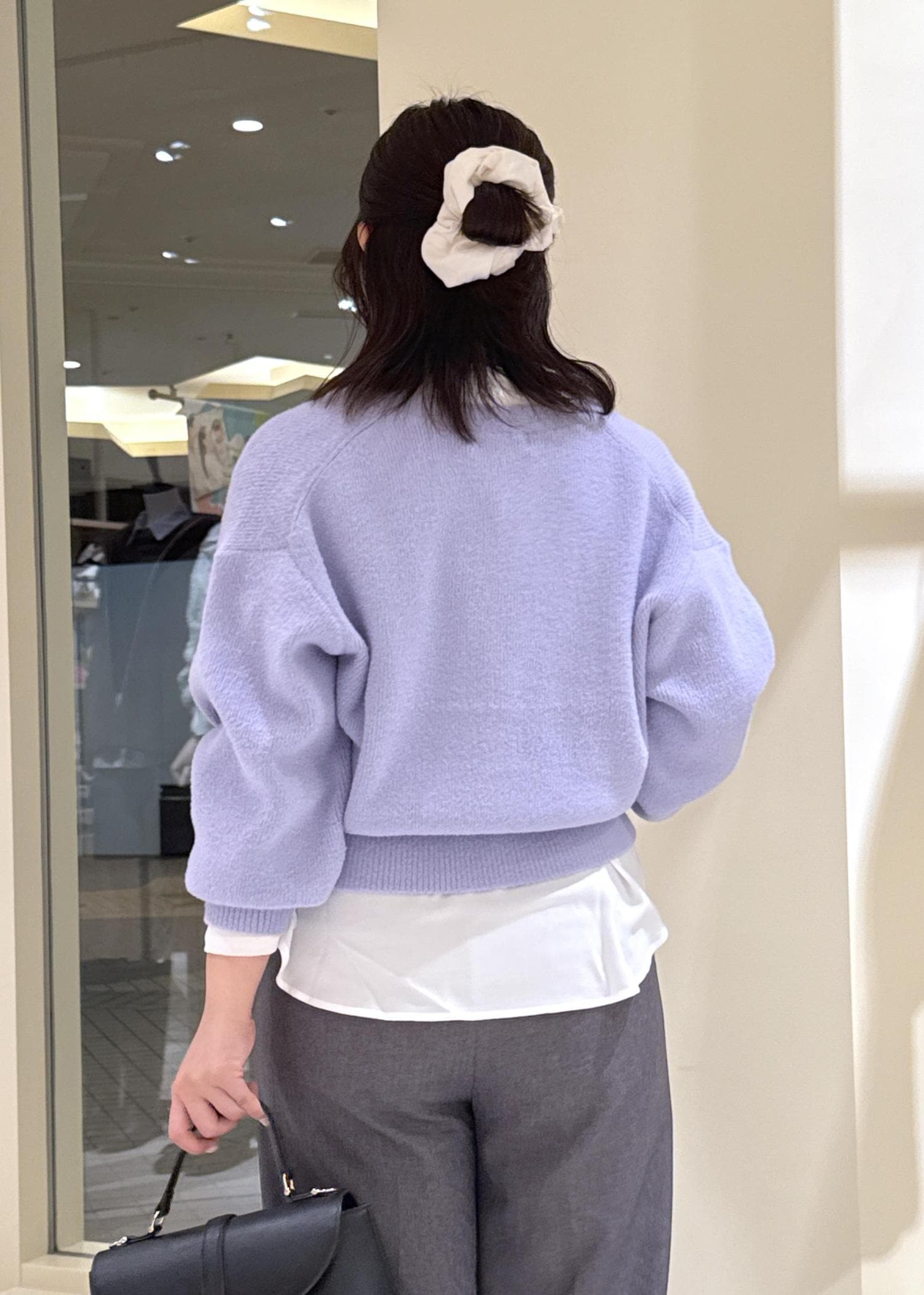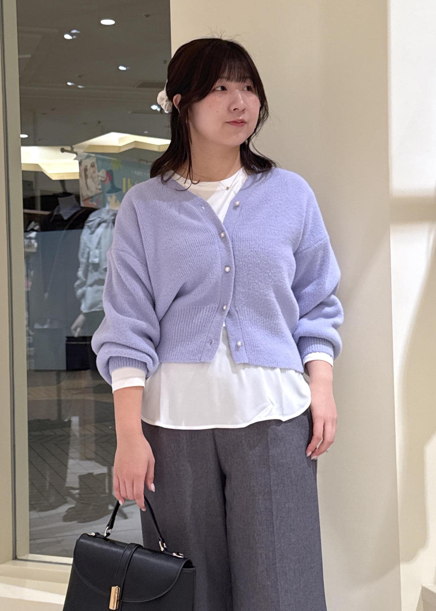 ショート丈は腰ジャストな丈感だったので、高身長骨格ウェーブさんや、トップにもボリュームのある方はボタンを外して詰まりすぎない印象にするのがオススメです。 -