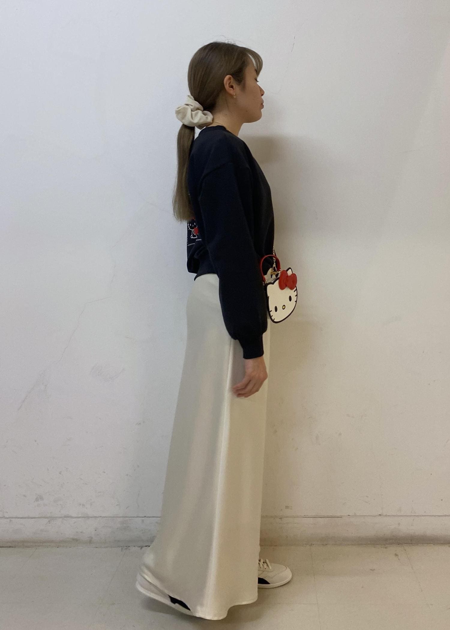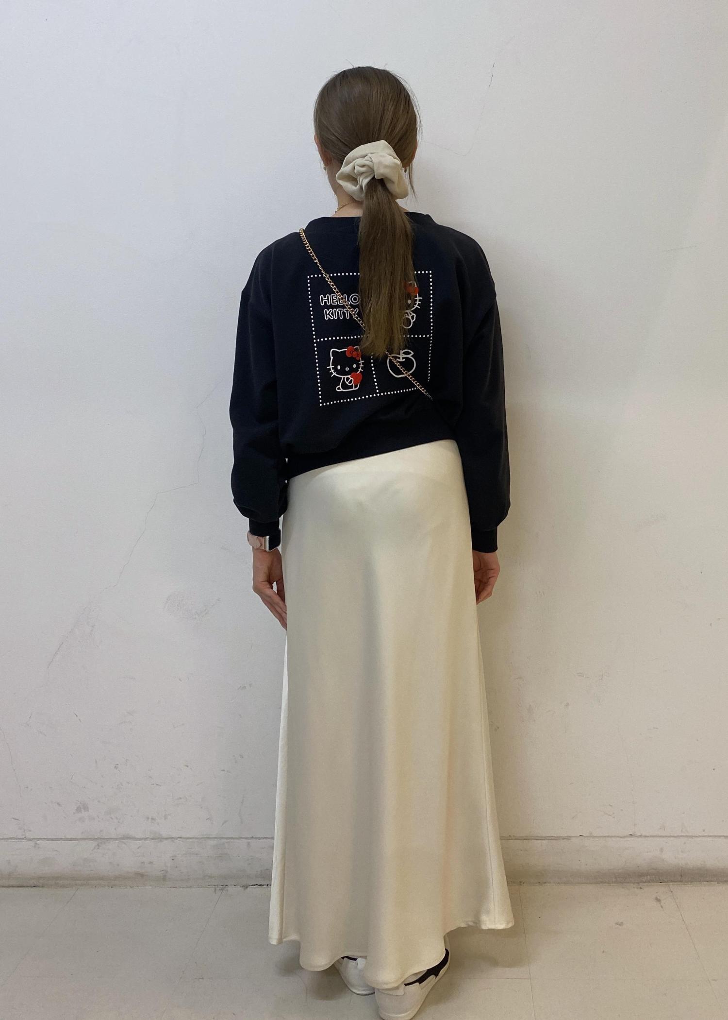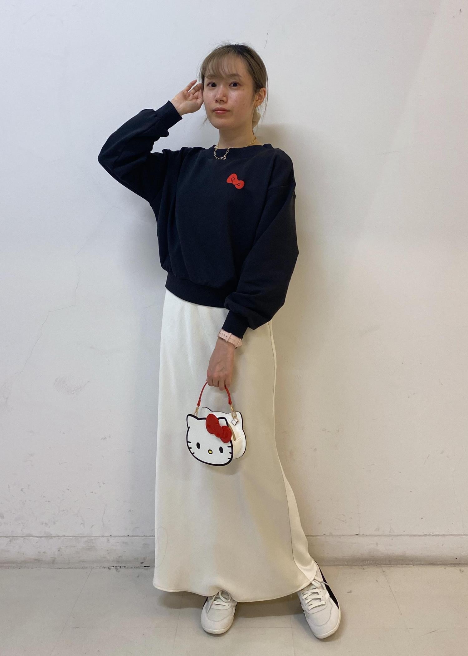 ハローキティのコラボプルオーバーにロングスカートをプラスして、大人カジュアルにまとめました。