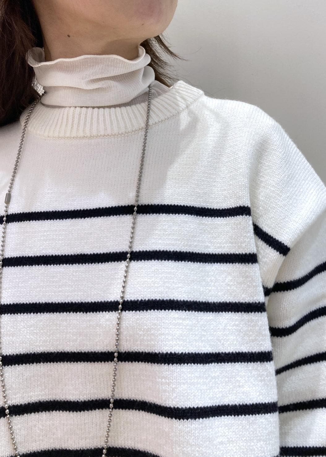 定番のボーダーにサテンスカートで女性らしさをプラス。