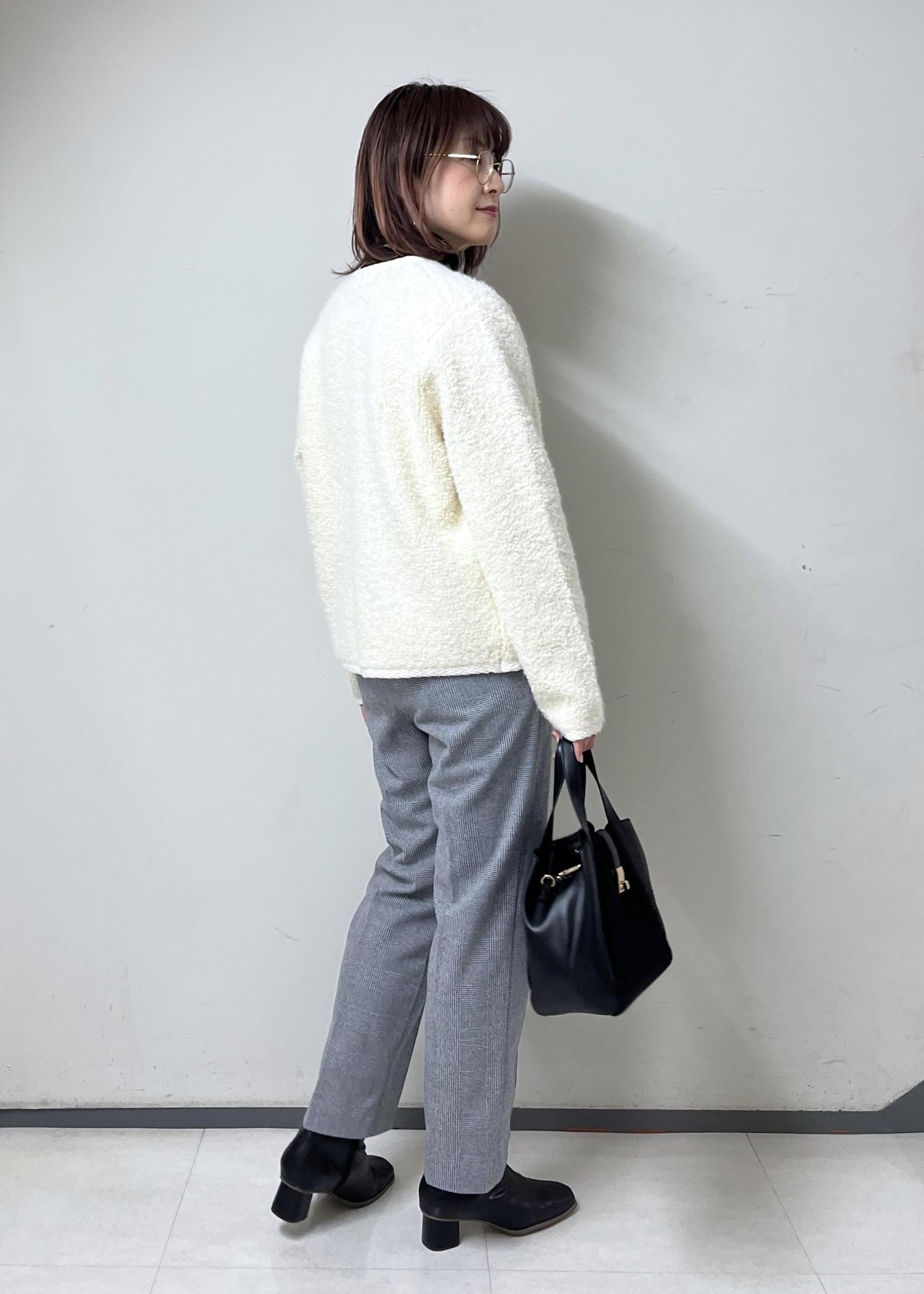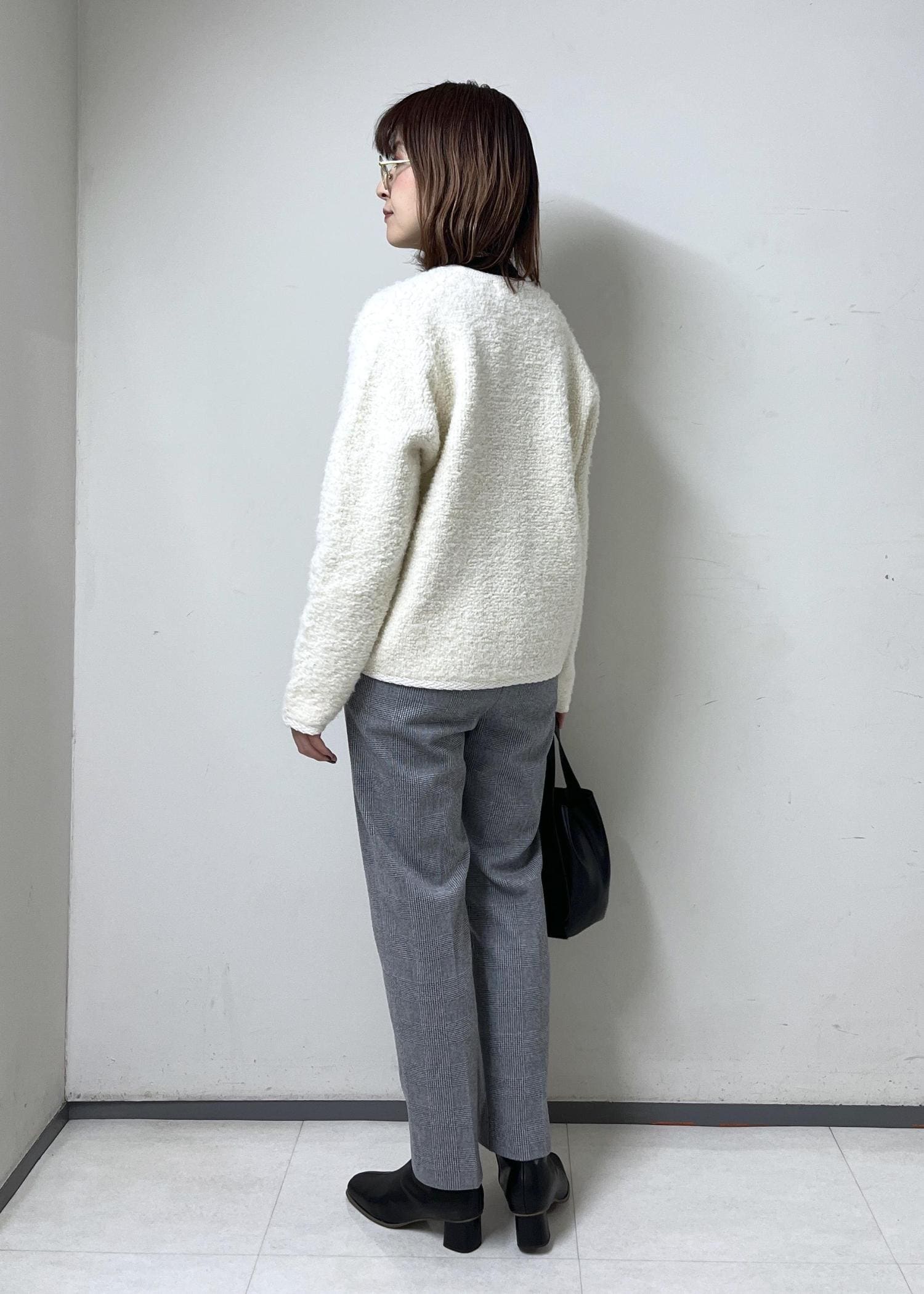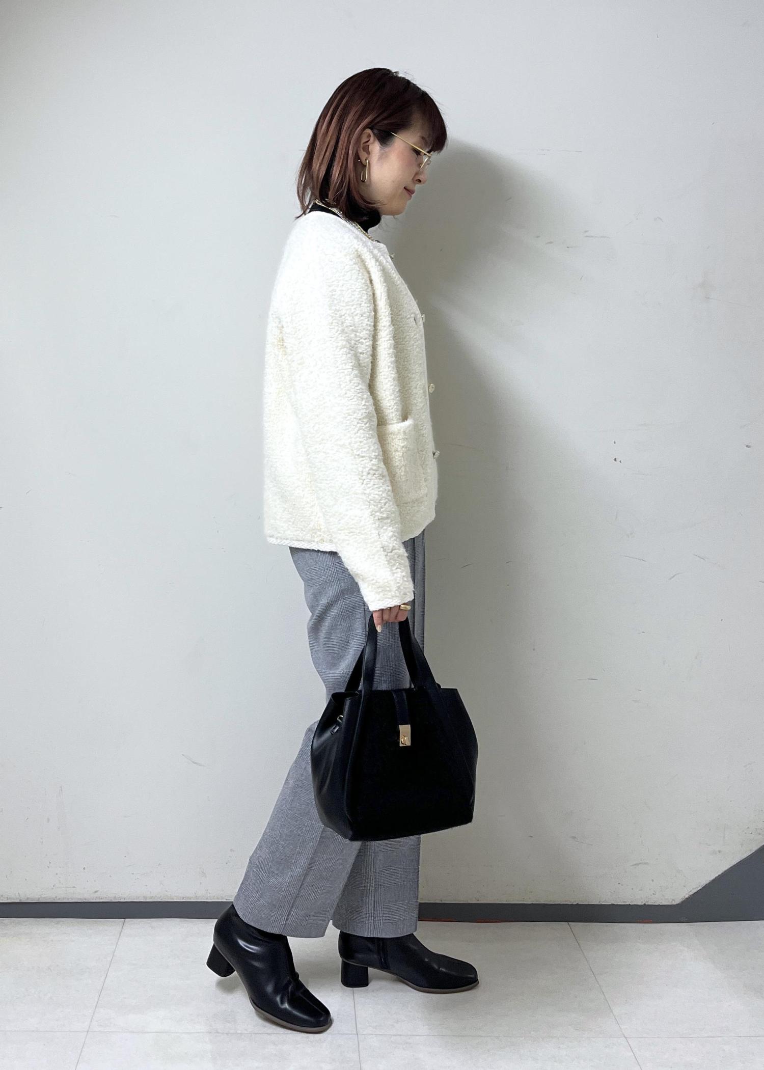タートルネックニットとループ編みニットブルゾンを合わせて、暖かな印象に♪