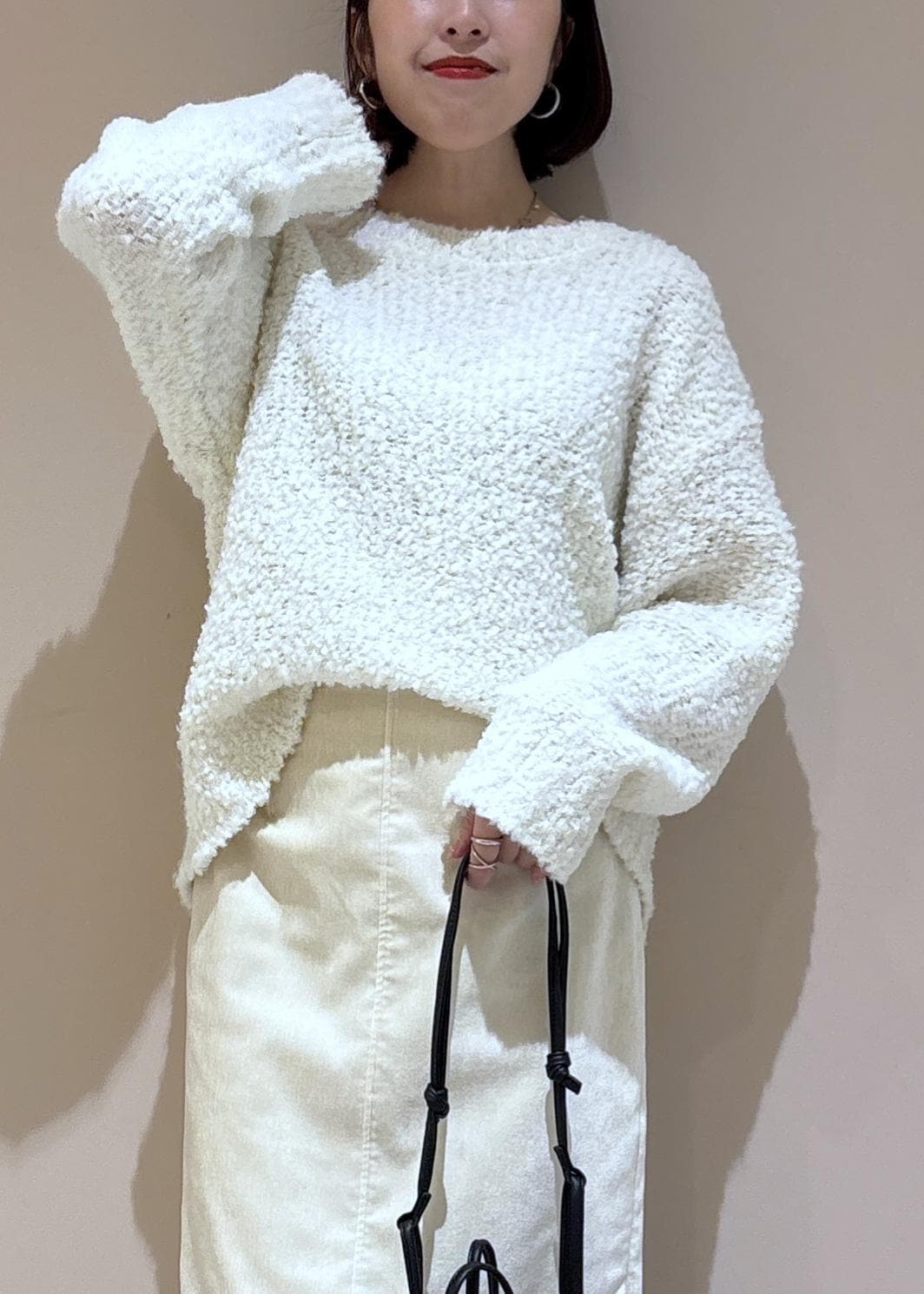 ワントーンで合わせたコーデやゆったりとしたニットと合わせても◎ -