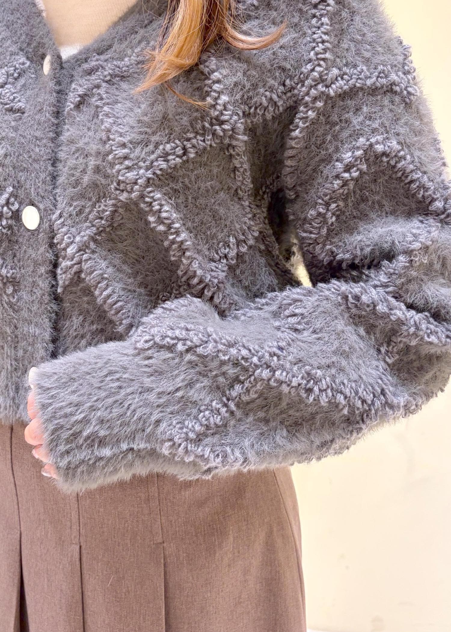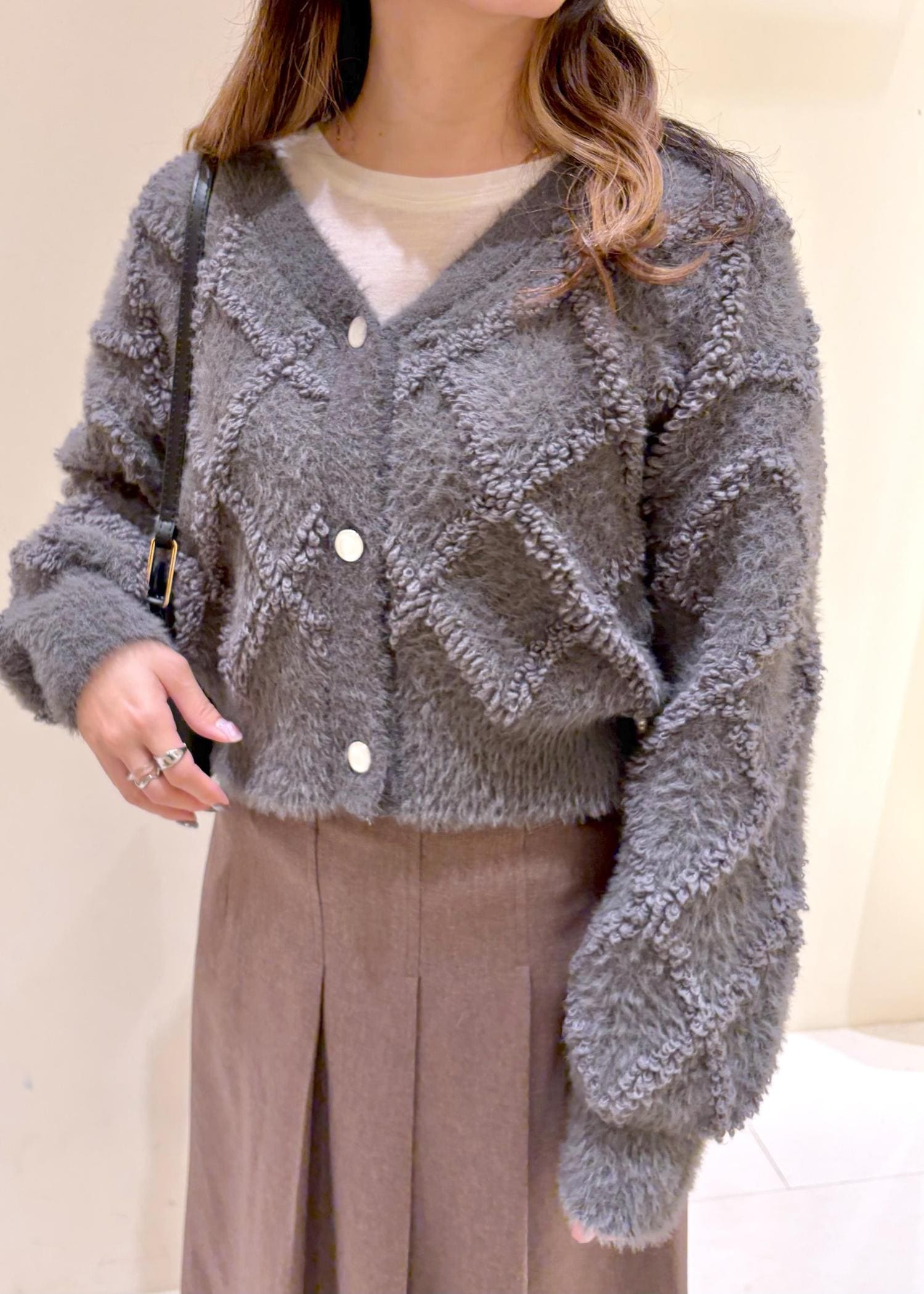 ROPÉ PICNICダイヤチェック柄ループフェザーカーディガンチャコール / F¥4,796レビュー1枚で様見えするデザインカーディガン。