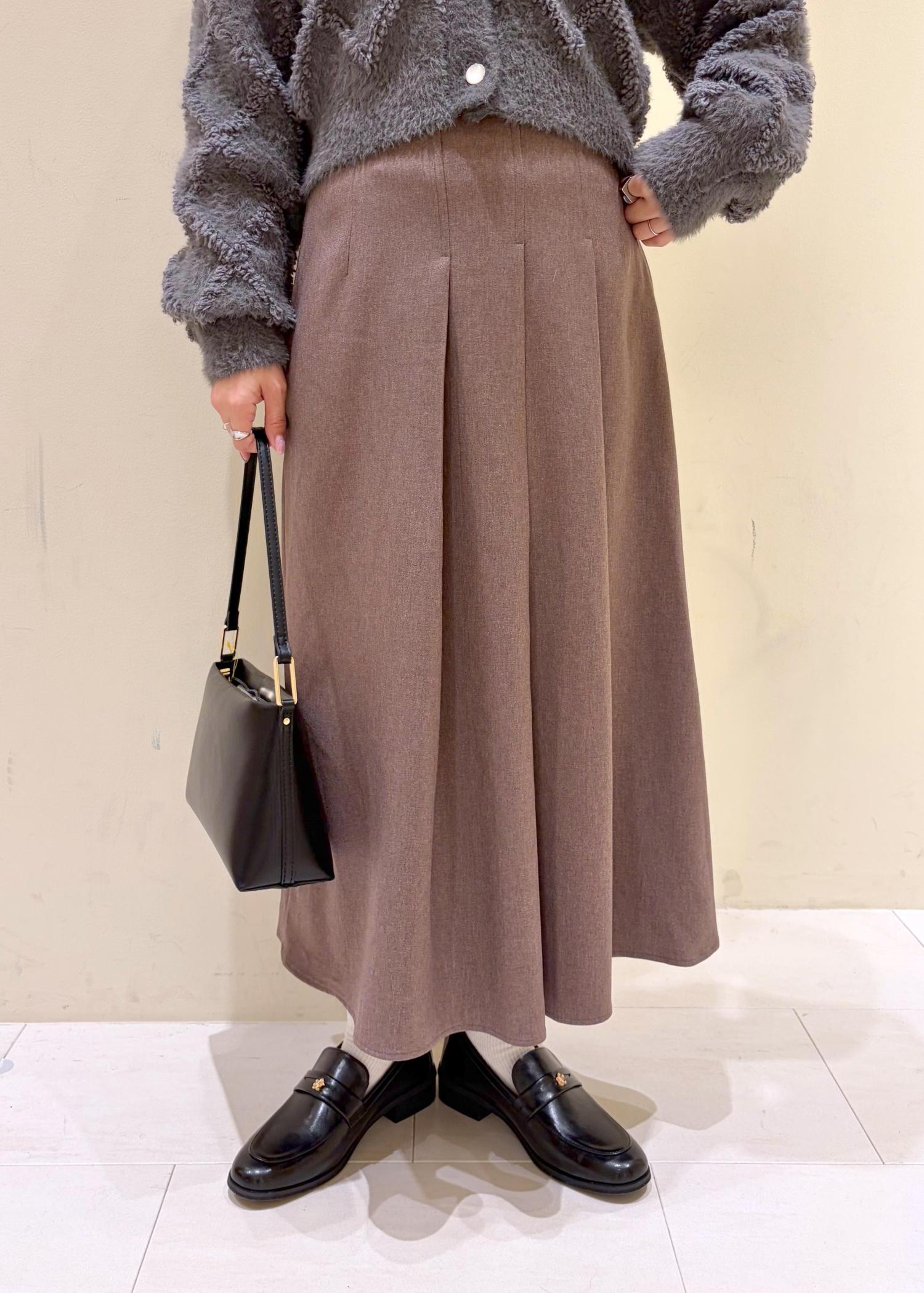 ショートカーディガン×タックフレアスカートで上半身華奢みえコーデ◎
