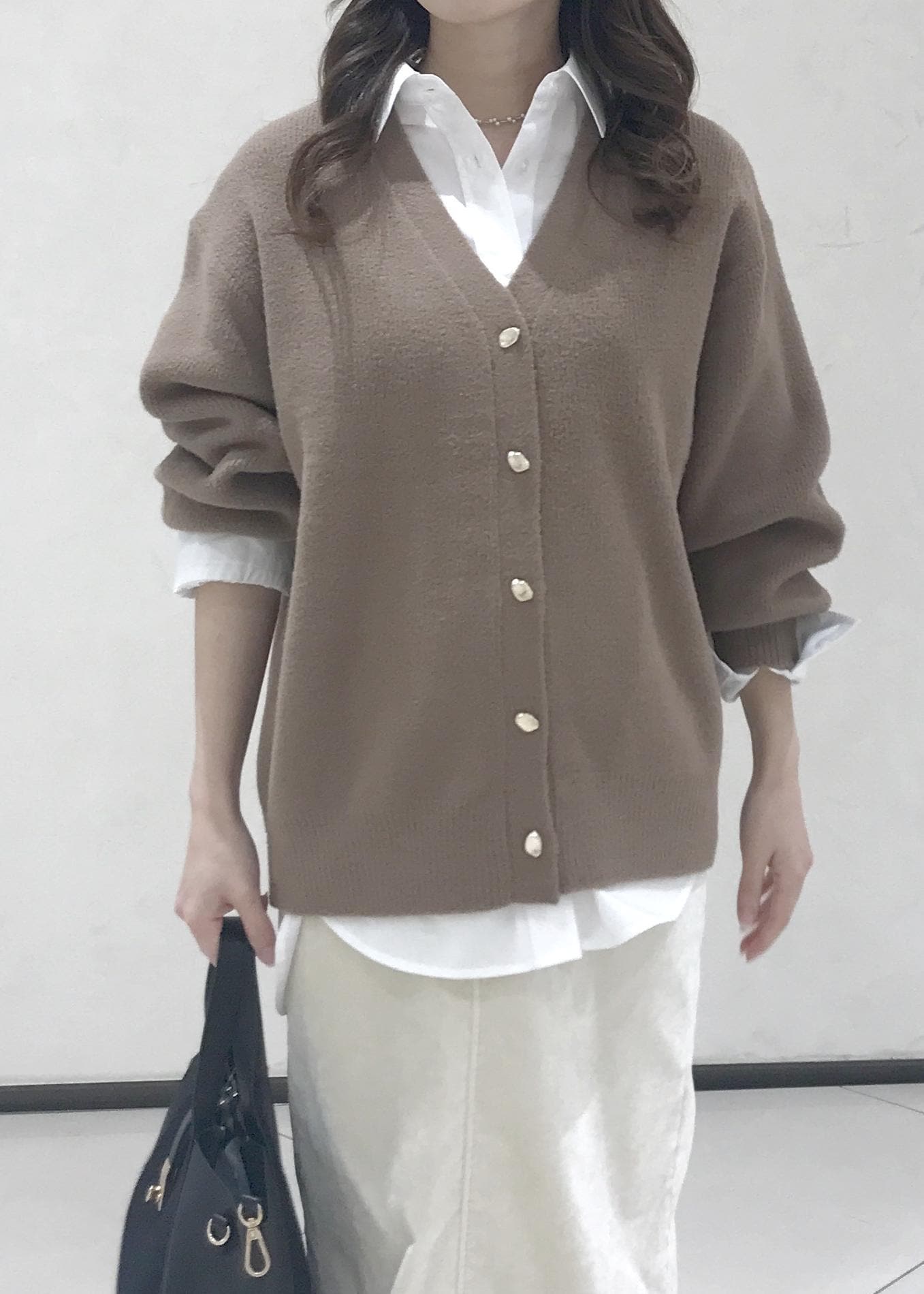 ROPÉ PICNIC【新色追加】スフレニットシリーズ 変形メタルボタンミドル丈カーディガン/イージーケア・リンクコーデベージュ / F¥4,391レビューお尻まで隠れる長さで