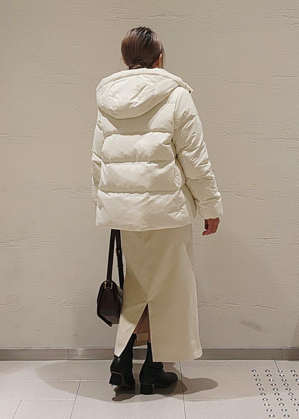 裾に絞りが付いているので、スッキリしたフォルムでもお召し頂け、外気が入りにくいのも嬉しいポイント。