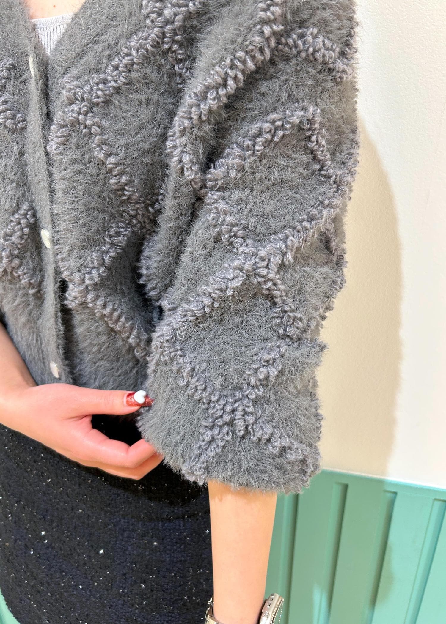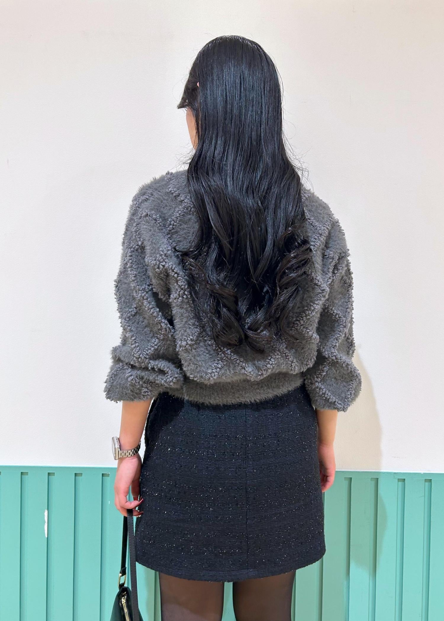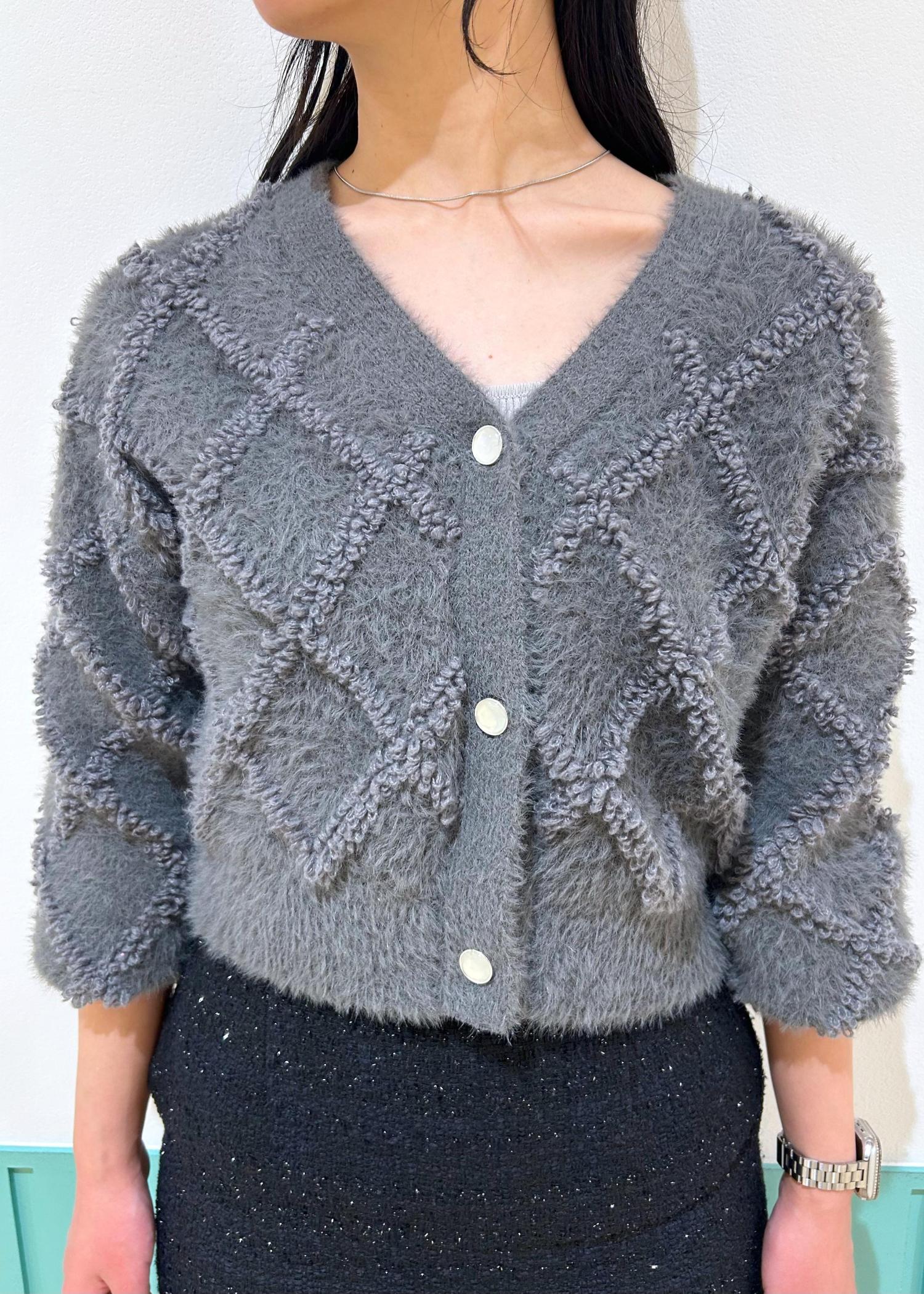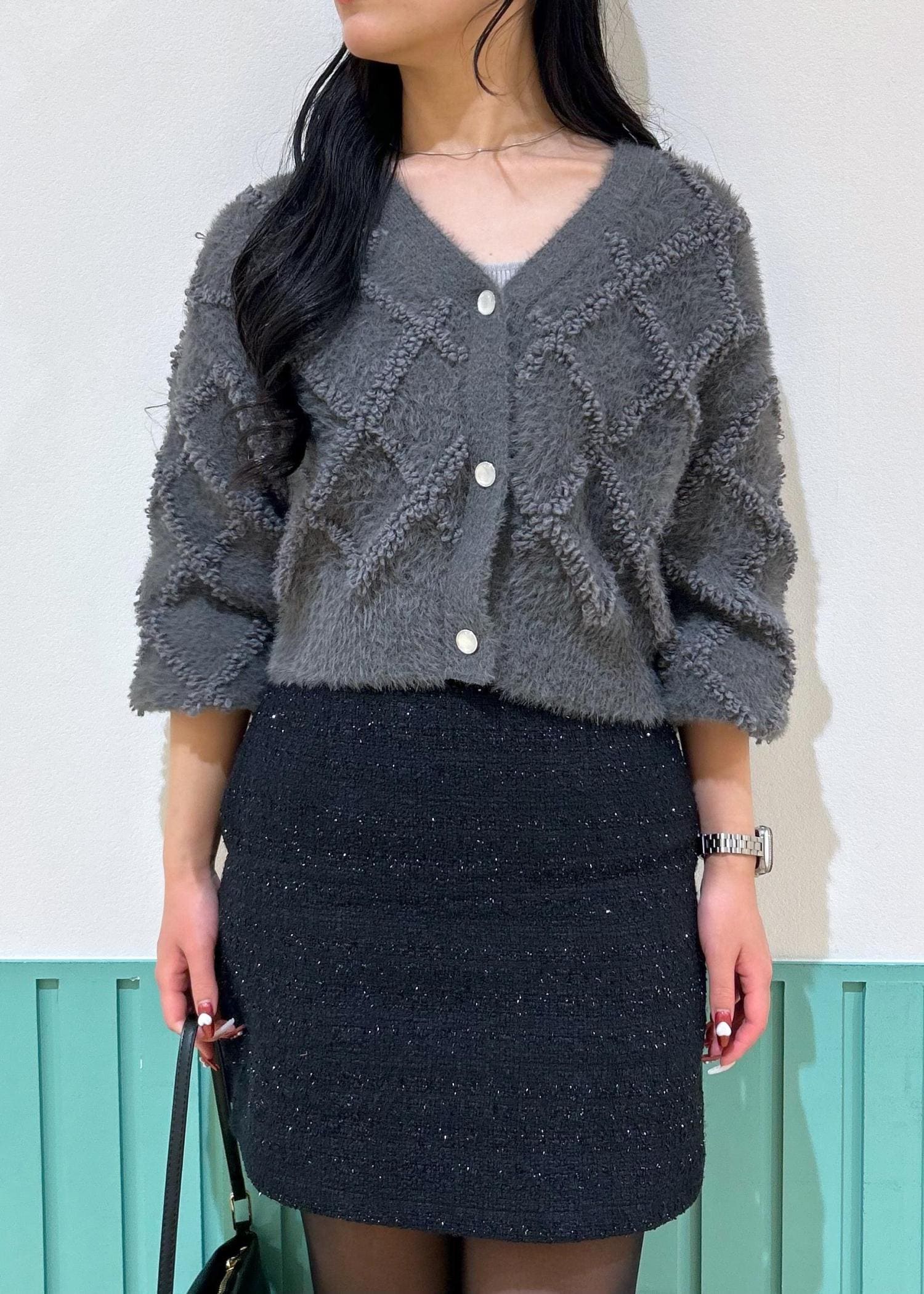 ROPÉ PICNICダイヤチェック柄ループフェザーカーディガンチャコール / F¥4,796レビューしっかり短丈で、骨格ウェーブさんにオススメな長さです。