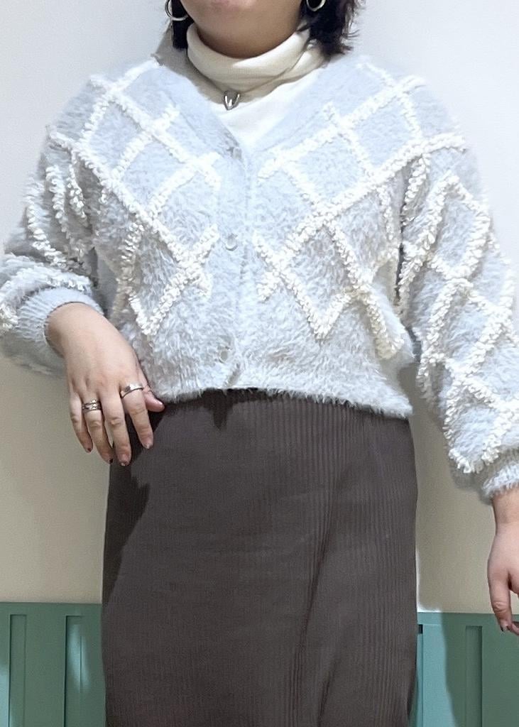 ROPÉ PICNICダイヤチェック柄ループフェザーカーディガンサックス / F¥4,796レビューボリューム感のあるニットですが、