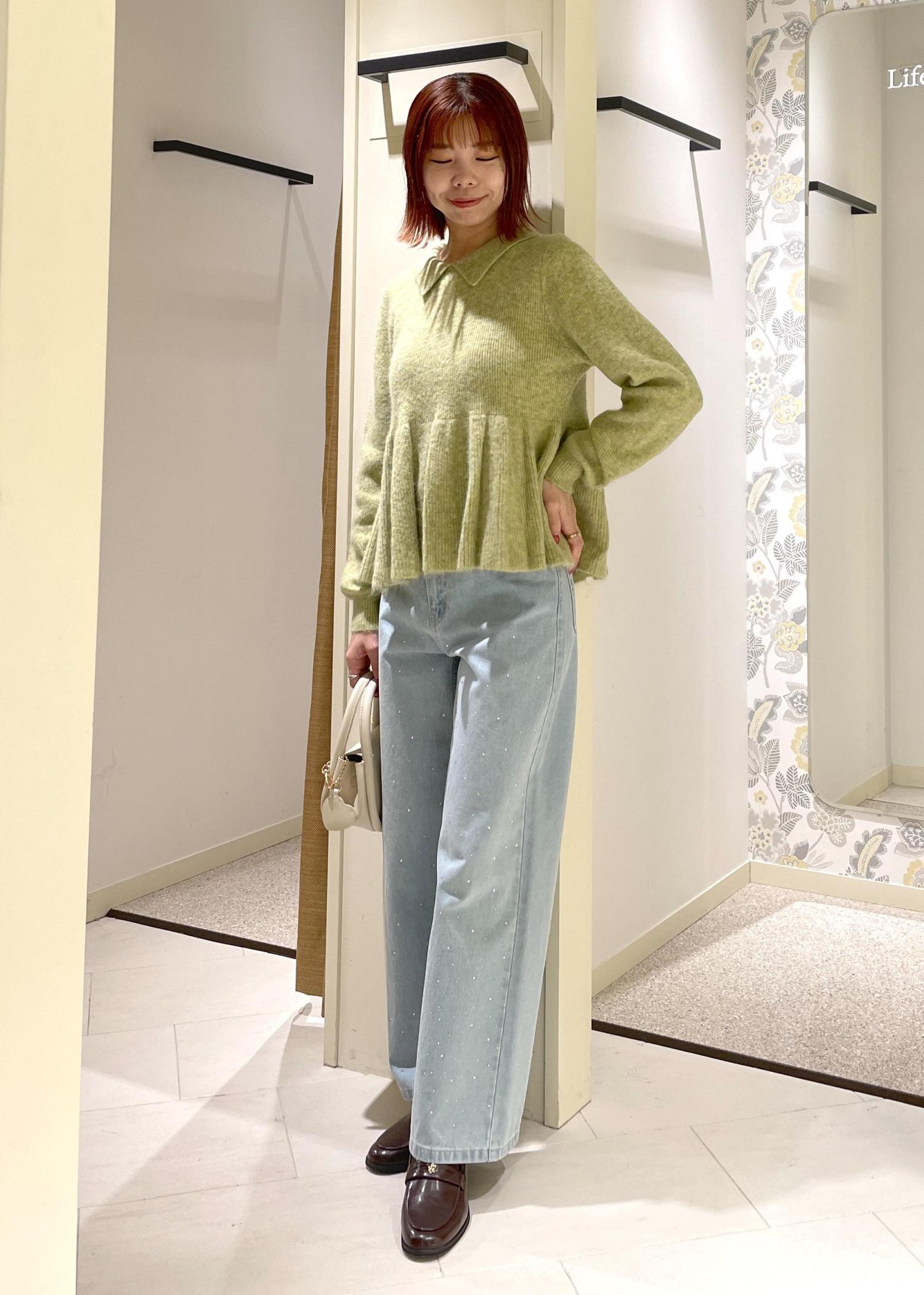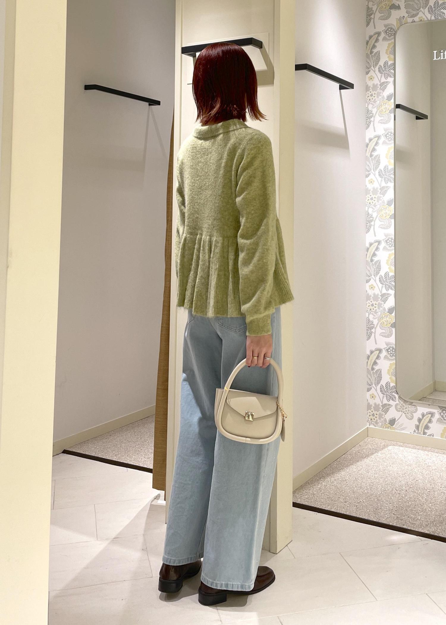 ふんわりと広がりのある女性らしいニットなので、デニムを合わせてカジュアルにまとめてみました。