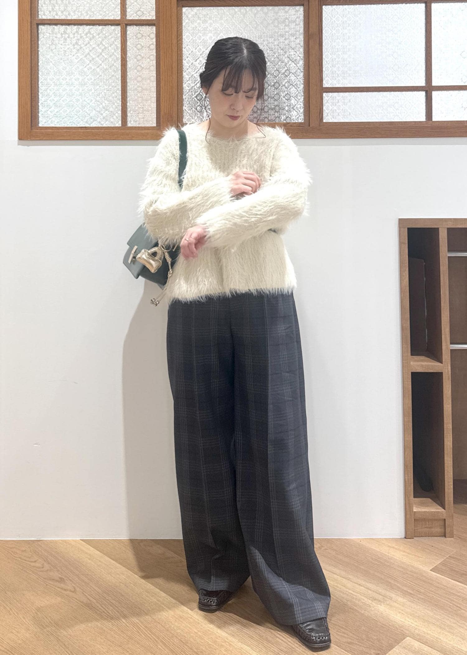旬なシャギーニットを組み合わせて今っぽさをプラスしたコーデです!