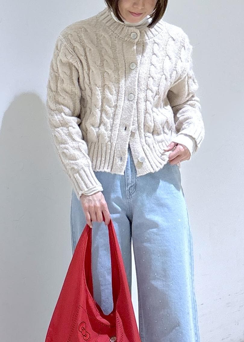 ROPÉ PICNICケーブルニットカーディガンベージュ / F¥3,842レビュー身幅にゆとりがあり身体のラインを拾わず着用できました。着丈は腰にかかるほどの長さです。