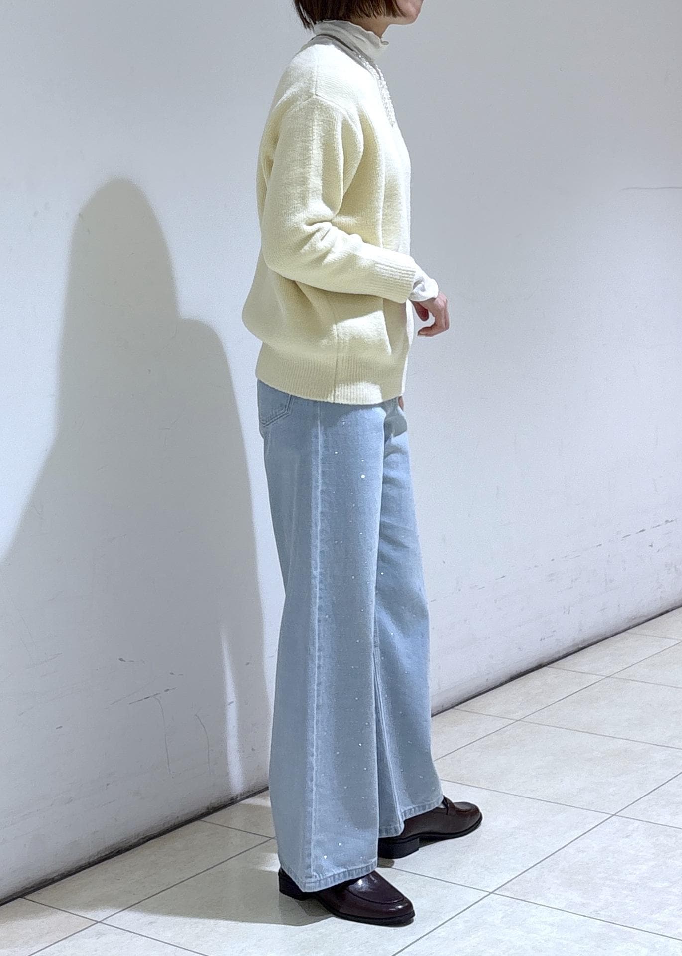 コーディネートに馴染んでくれるキラキラ感がポイントのデニムパンツです。 -