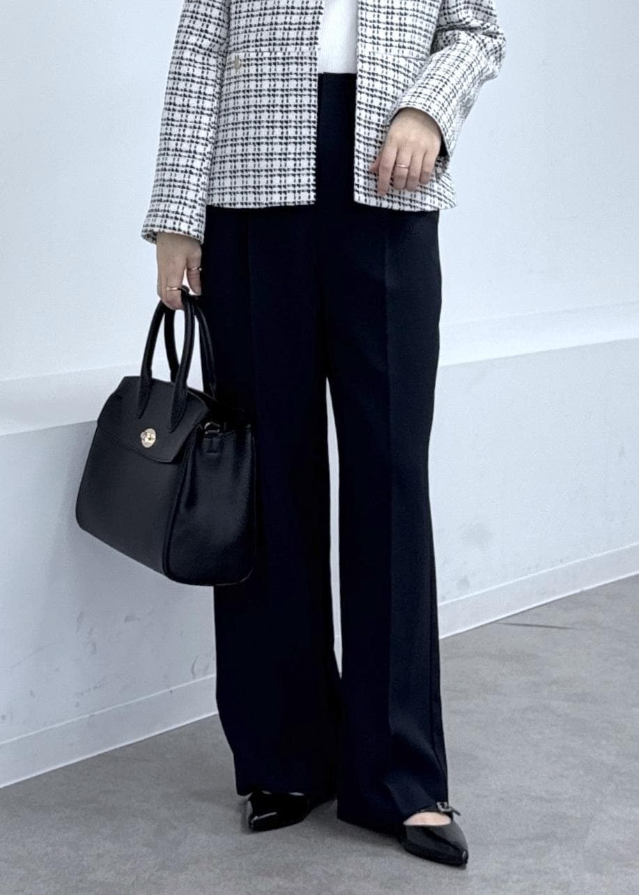 ROPÉ PICNIC【WEB限定カラー】360°ウルトラストレッチ ワイドパンツ/花粉ガード・セットアップ対応ブラック / M¥5,995レビューハリ感のあるしっかりとした生地なのでかしこまったシーンなどにも重宝します。センタープレス入りのワイドパンツなのでスッキリ綺麗にキマります。Mサイズで甲に少し触れるくらいの着丈。