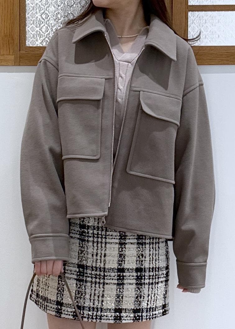 ROPÉ PICNICジャージーメルトンシリーズ ポケット付きジップブルゾン/リンクコーデブラウン系 / F¥6,999レビューショート丈で、どのボトムともバランスのとりやすいアウターです。