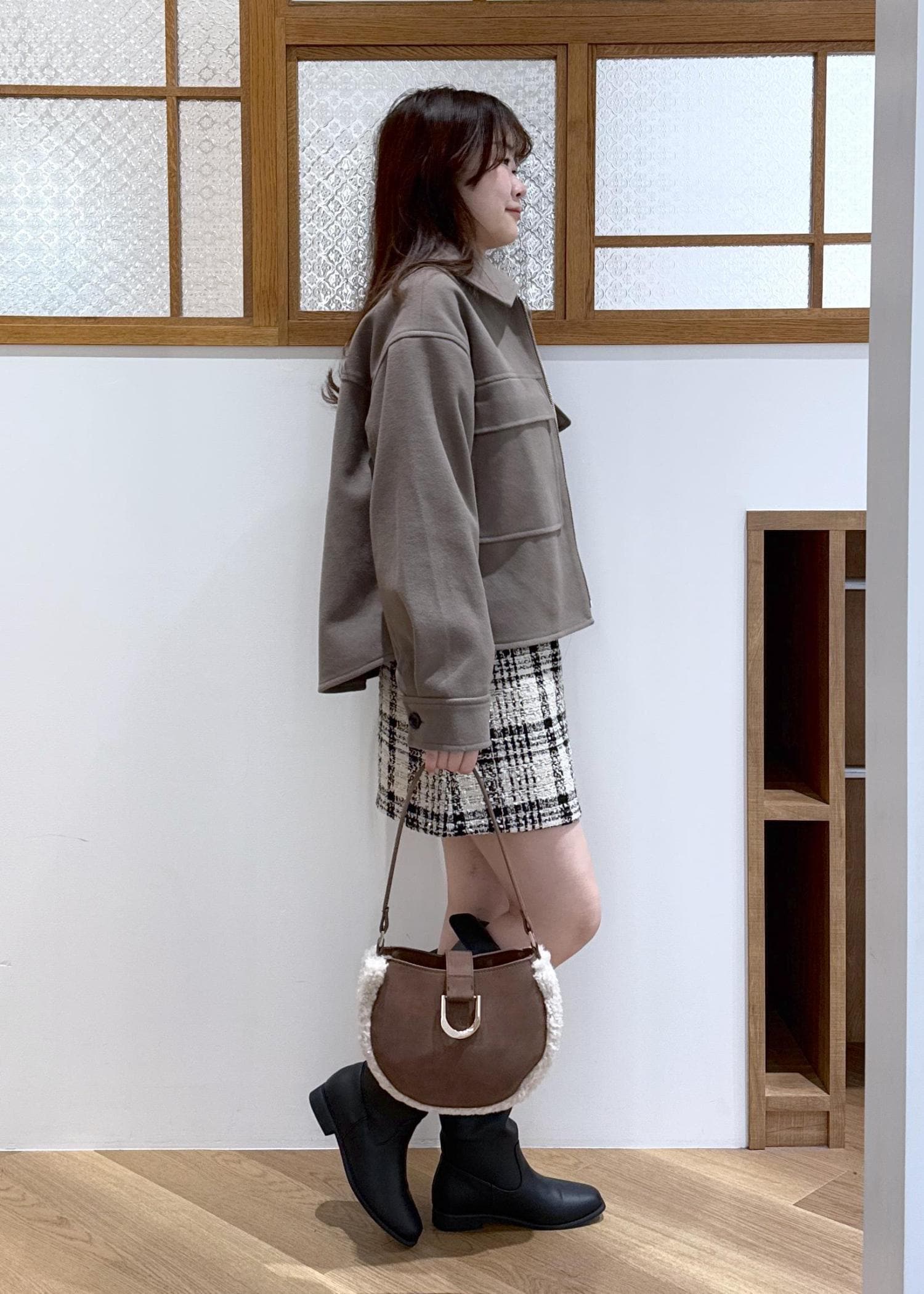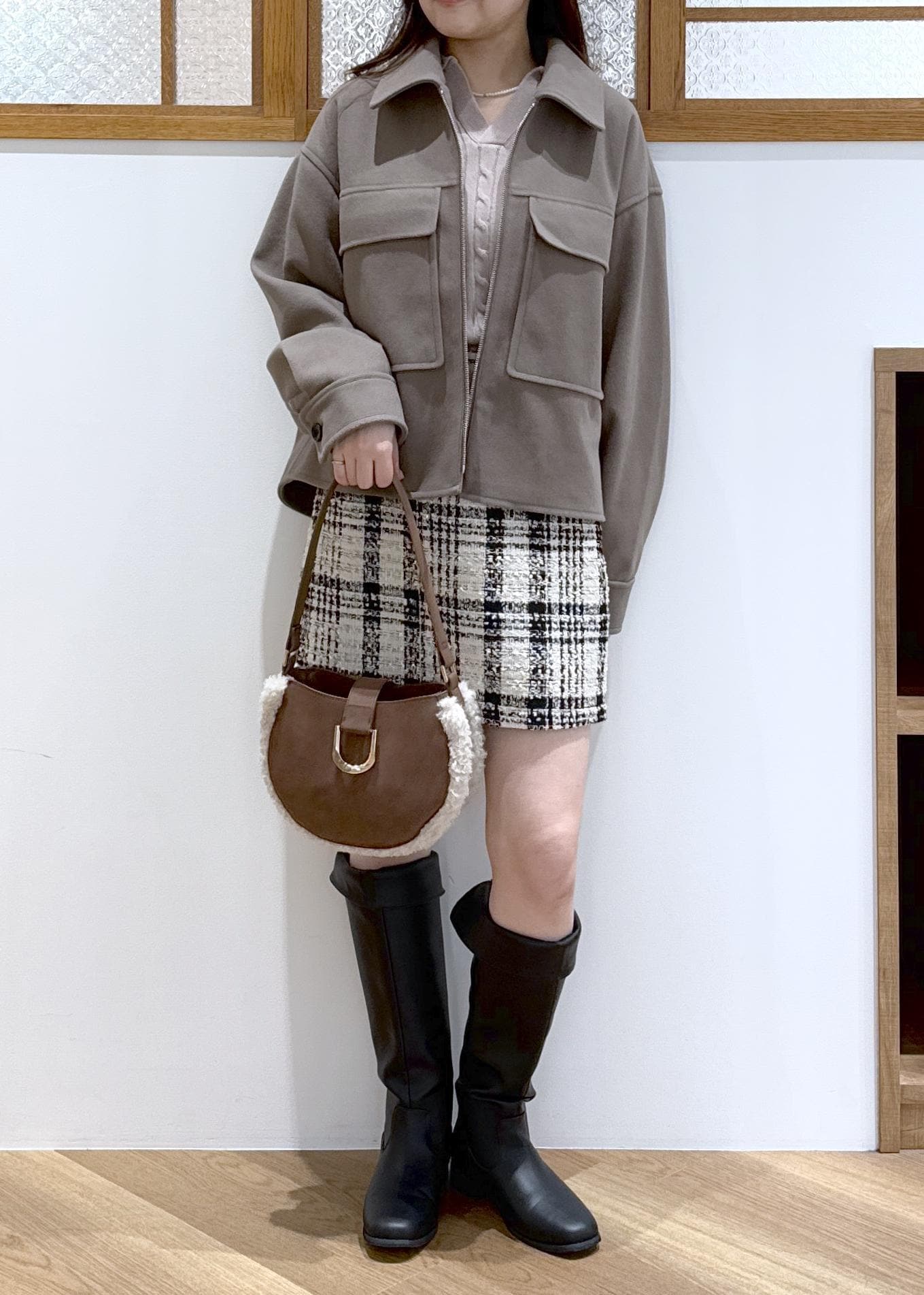 ブラウンを基調とした、カジュアルガーリーなコーディネートです。