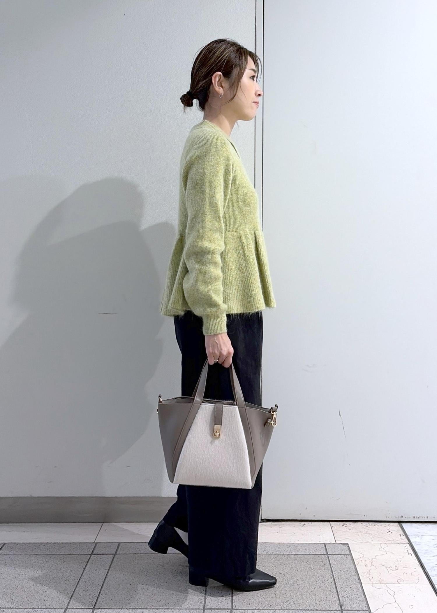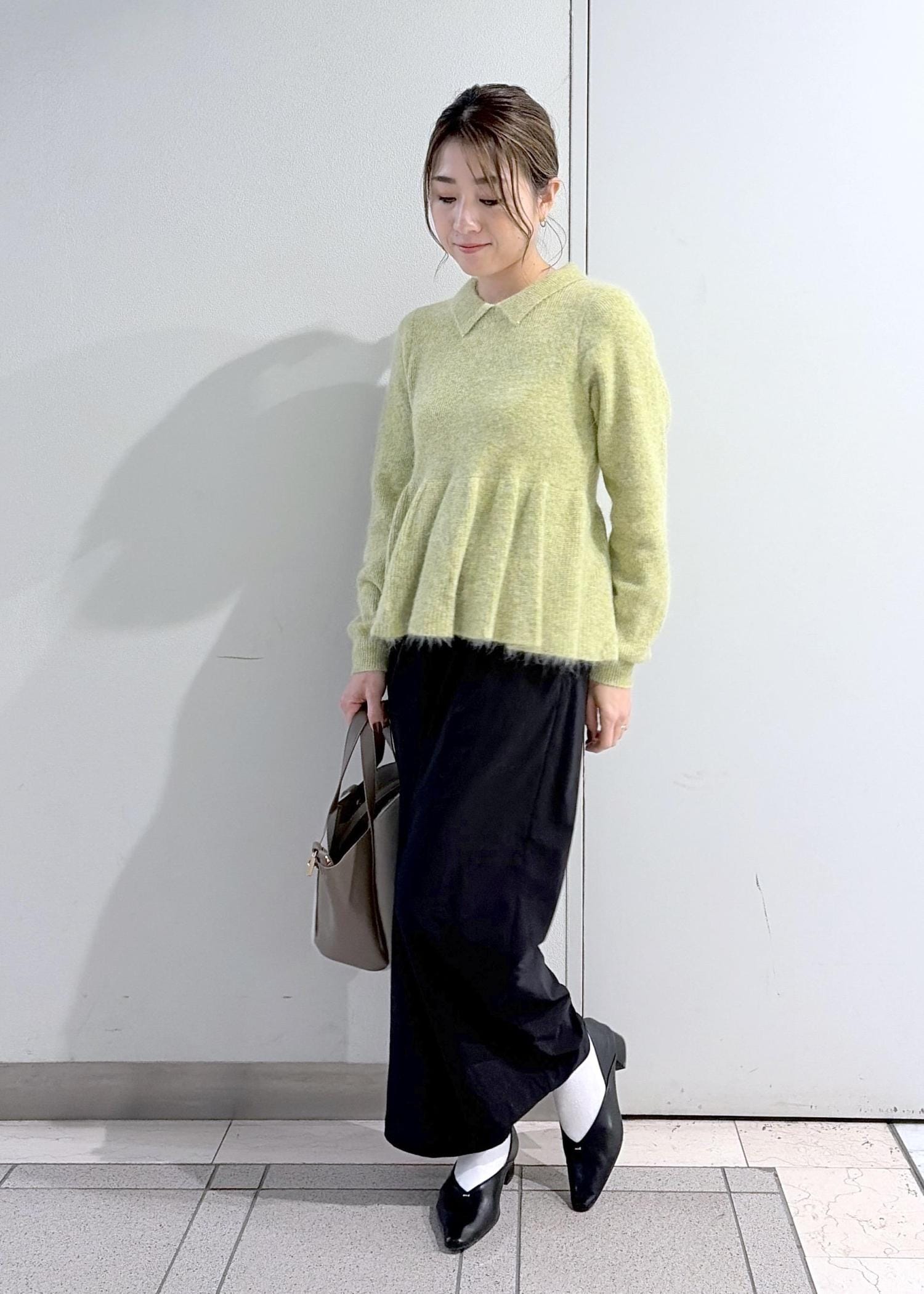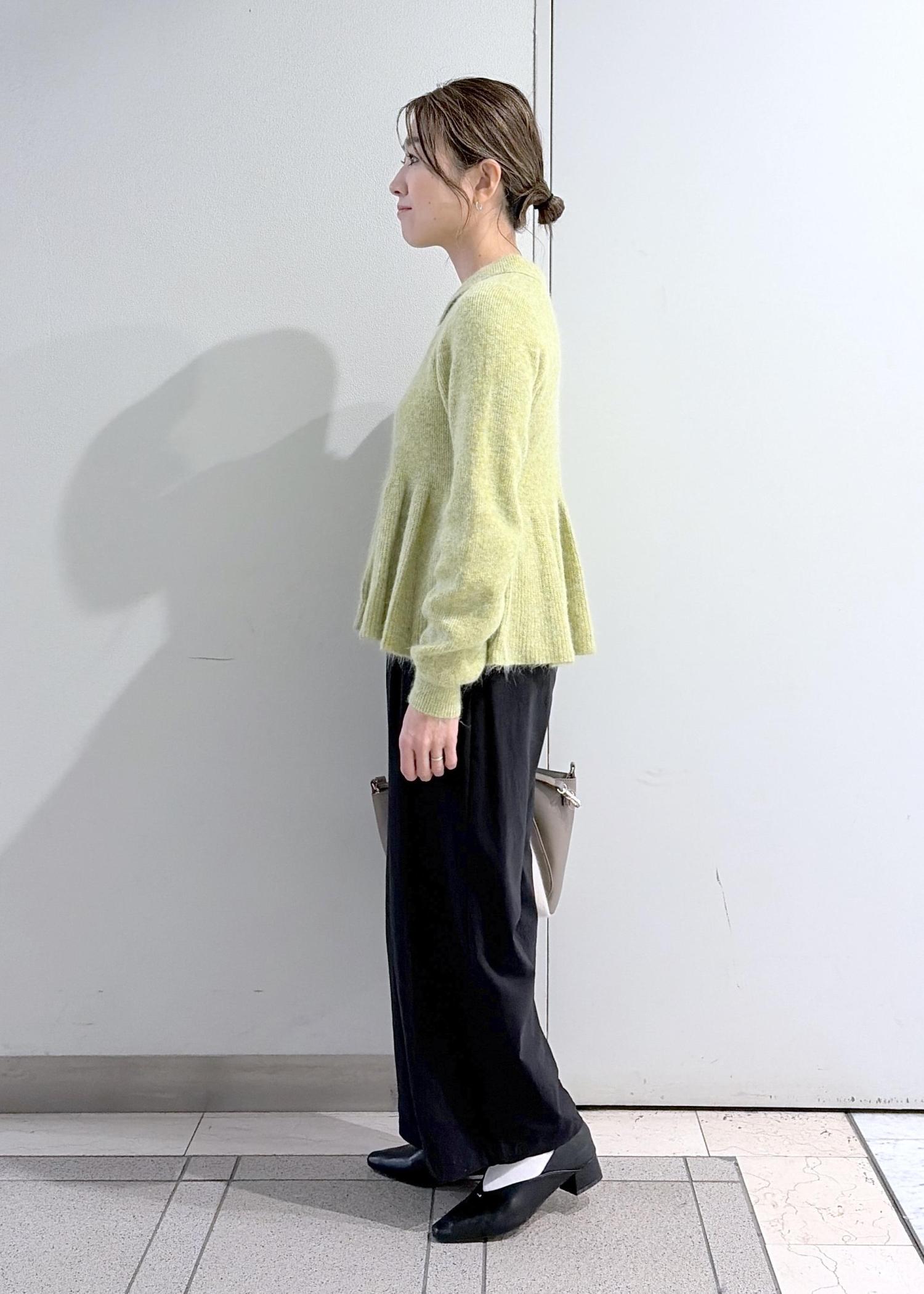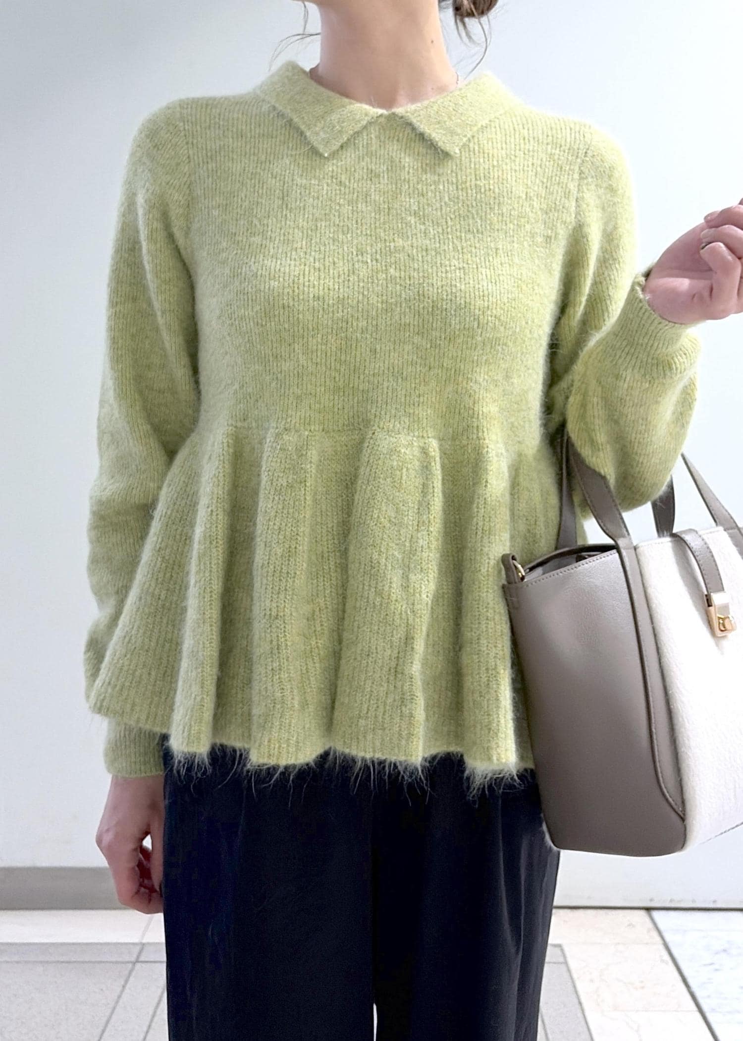 ROPÉ PICNICアンゴラ混ペプラムニットキミドリ / F¥5,995レビュー程よくゆとりのあるサイズ感。ペプラムシルエットでお腹周りのカバーも出来ます。着丈は腰まわりにかかる位のスッキリとした長さです。