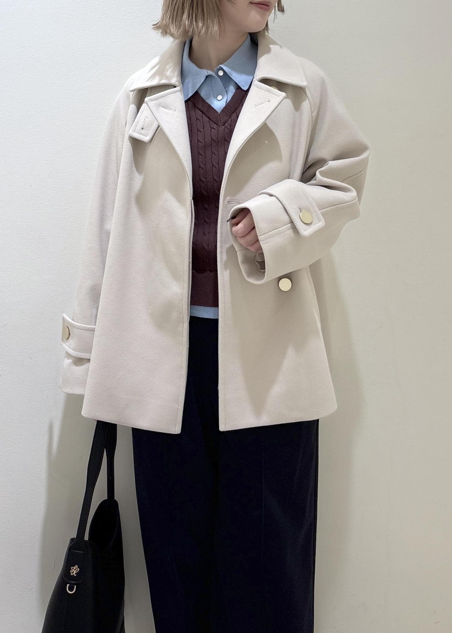 ゆとりのあるサイズ感なので、中にニットを着ても安心です◎金釦がアクセントになります。 -