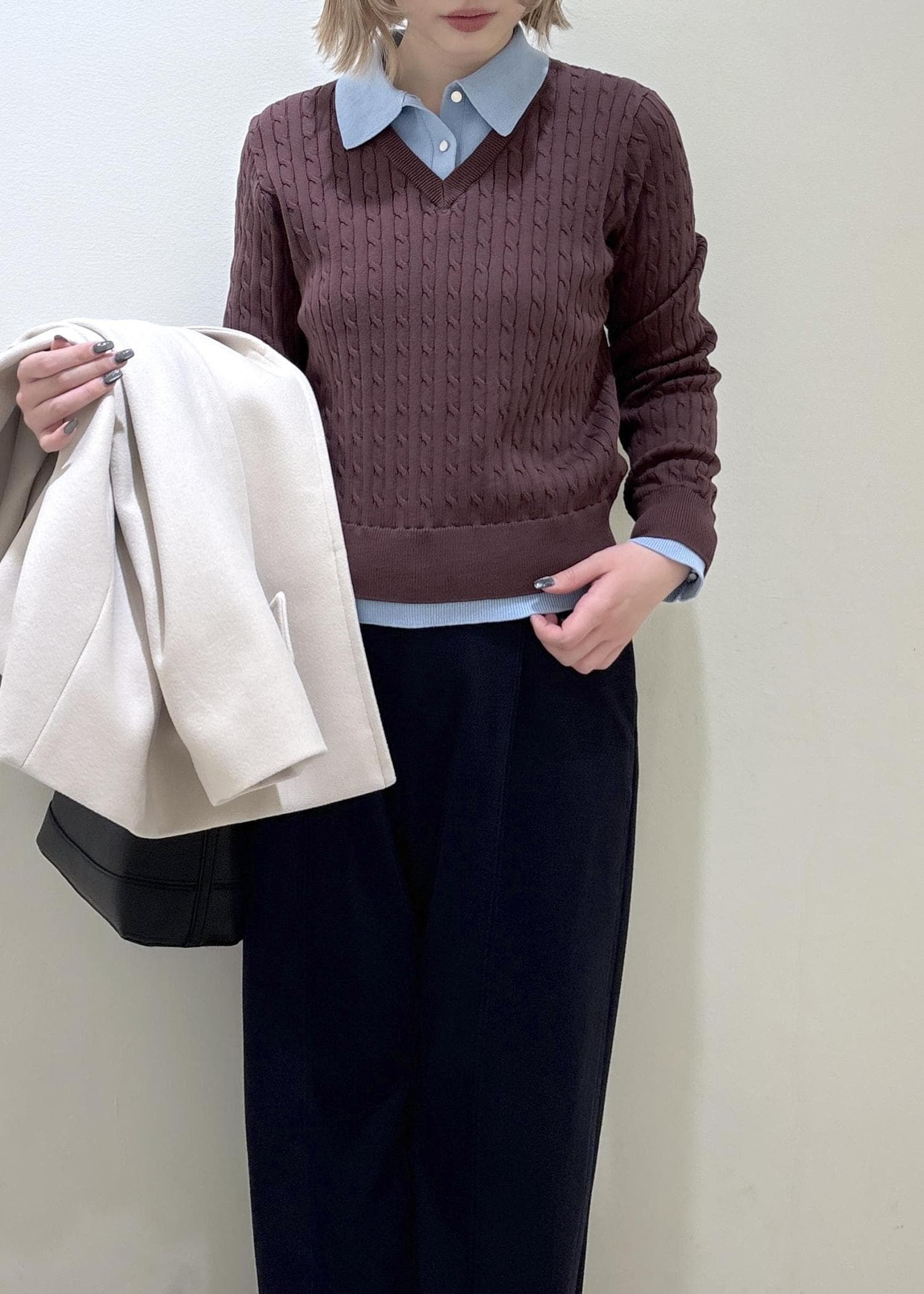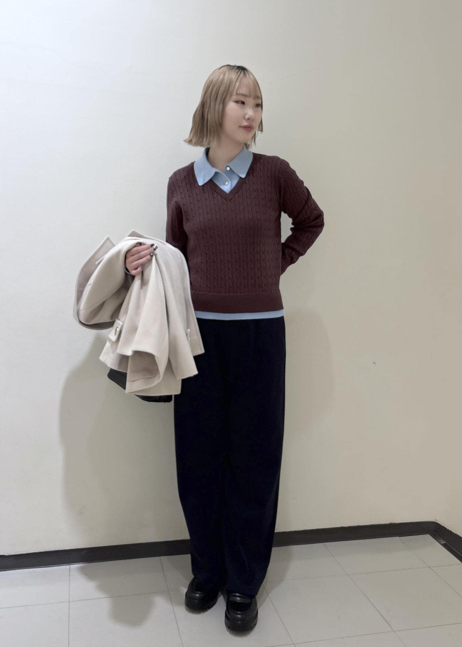インナーのレイヤード風のニットをコーディネートのアクセントにしました。