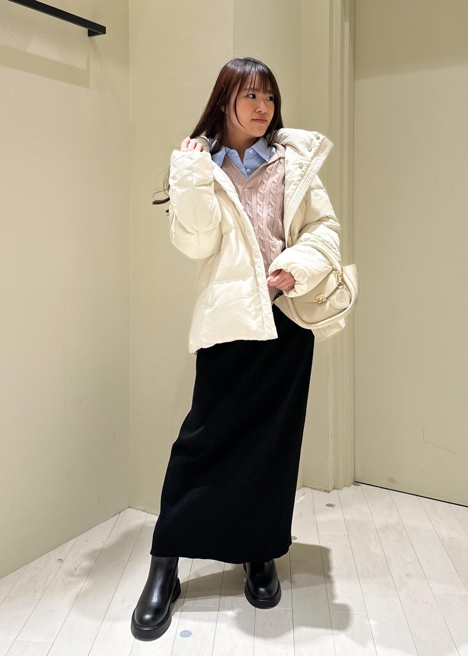 ダウンは黒でもかわいいですが、全体が暗くなってしまうので今回は白にしました♪