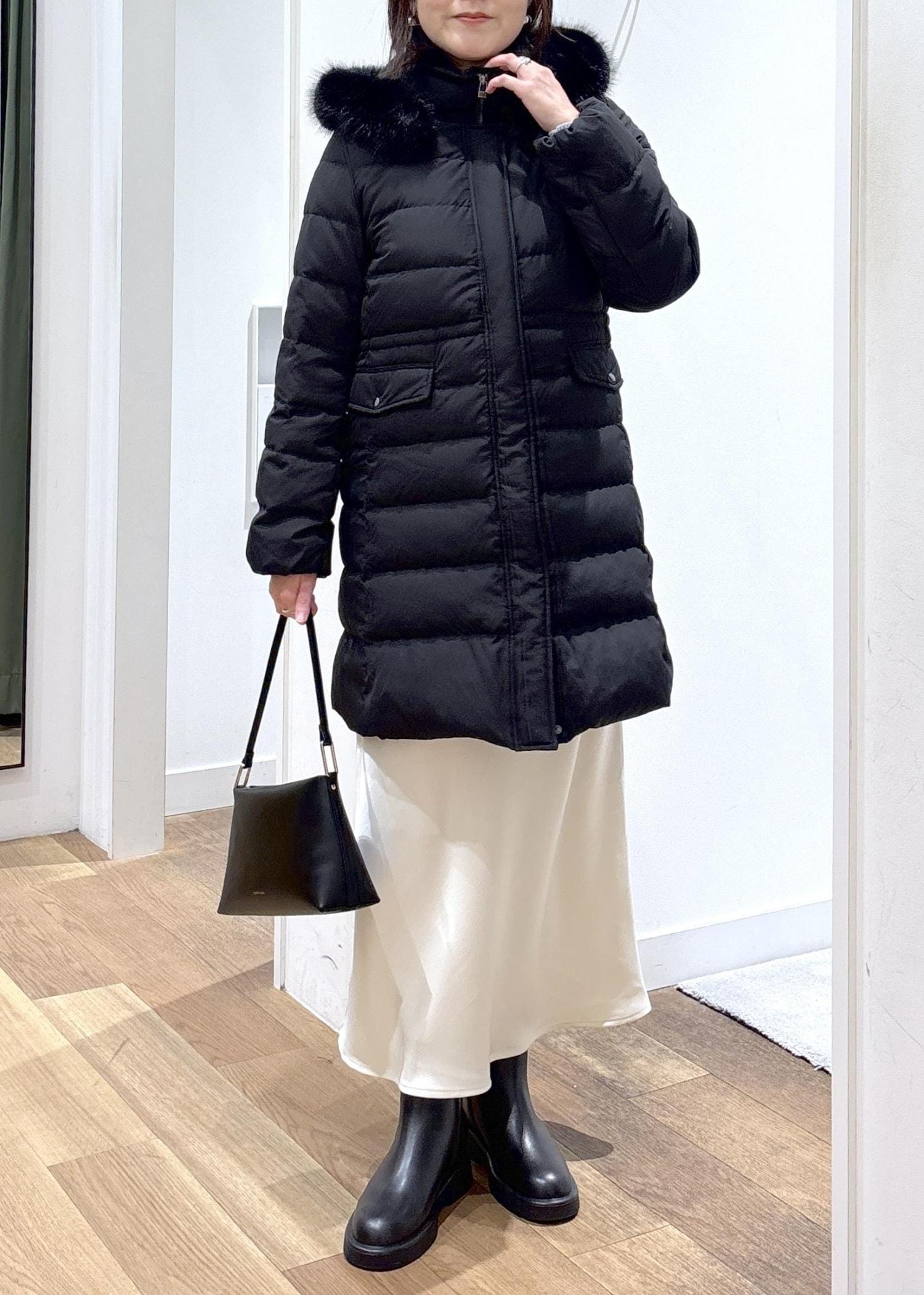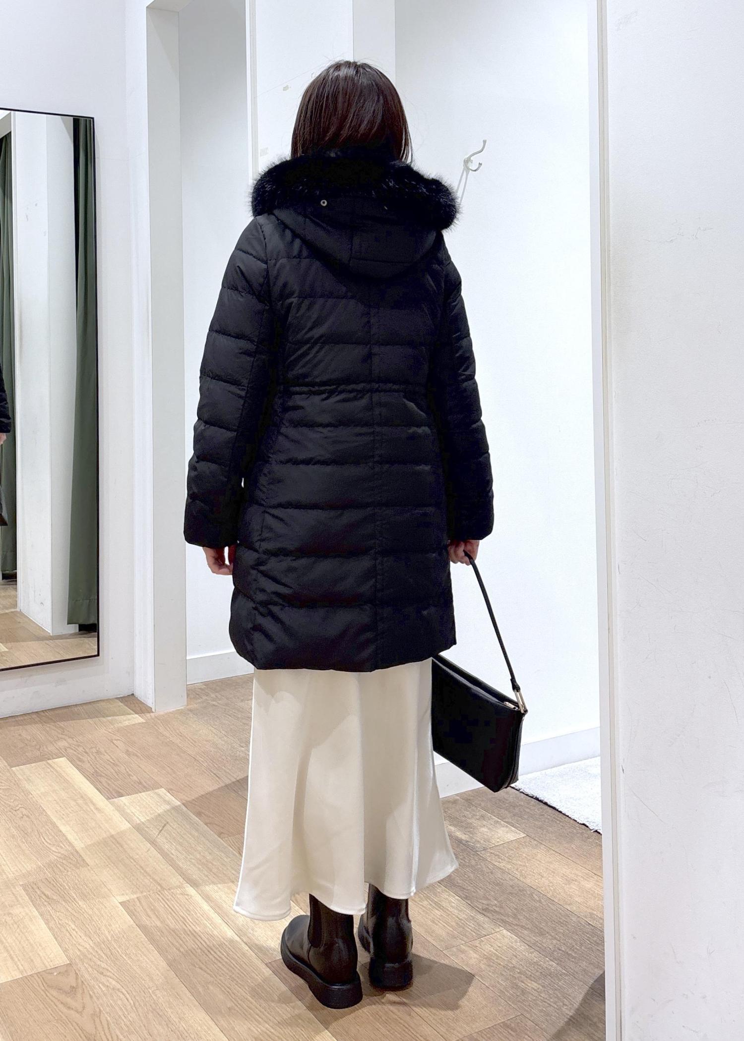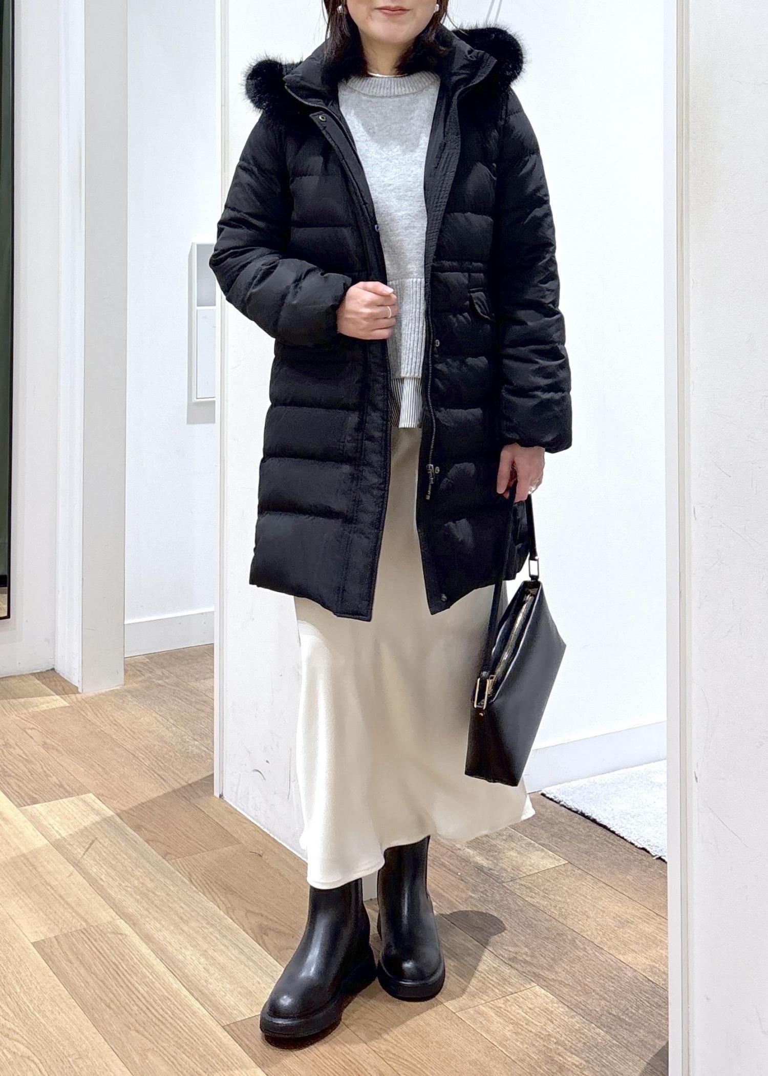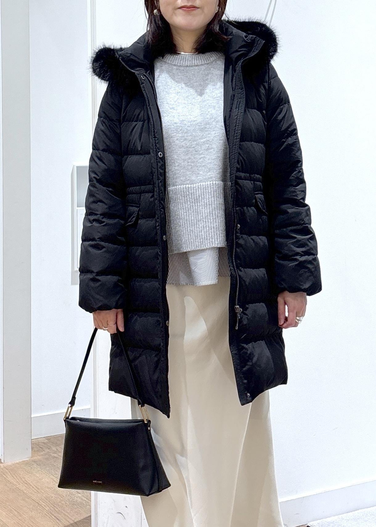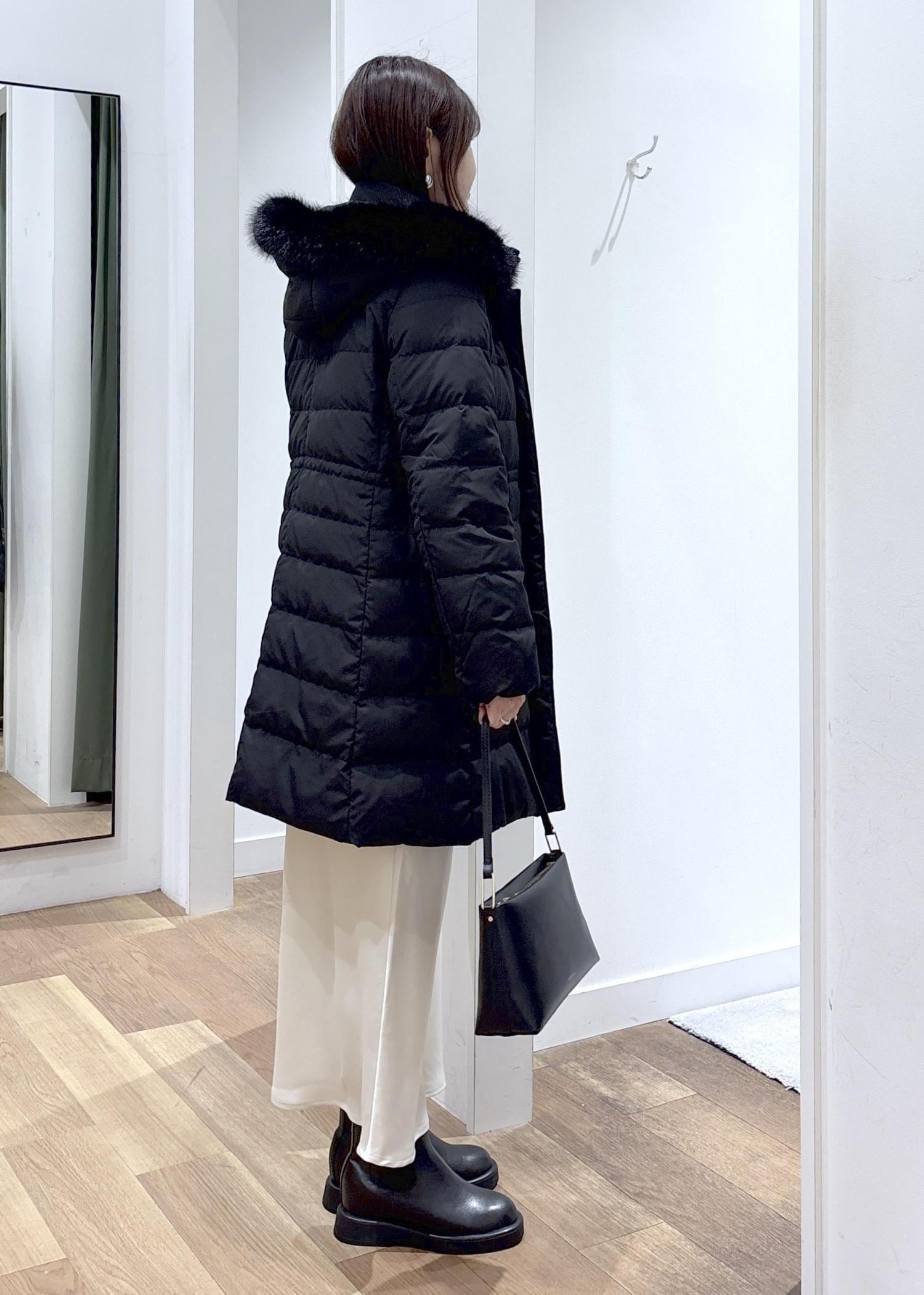 黒のロングダウンが軽やかに見えるように
