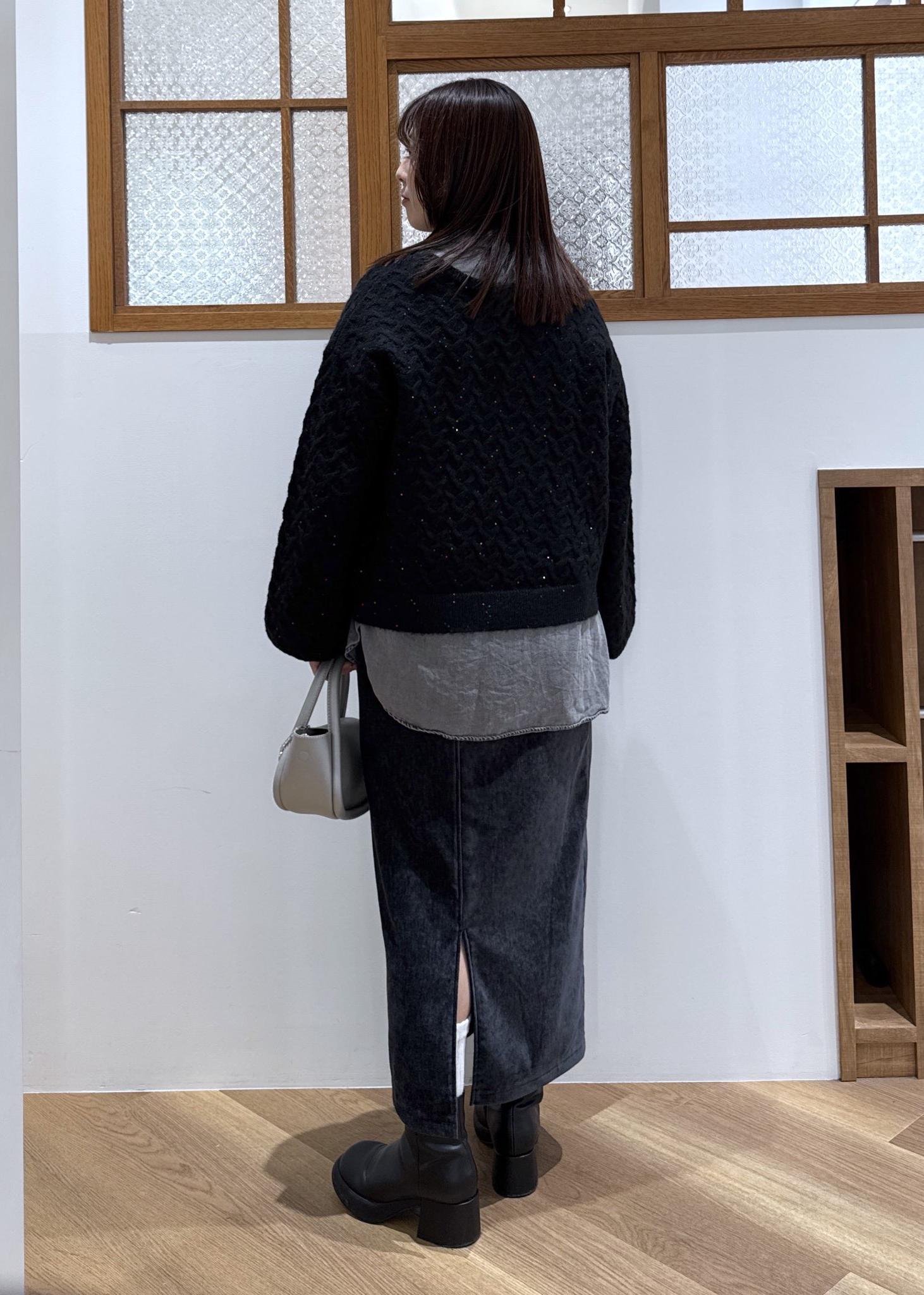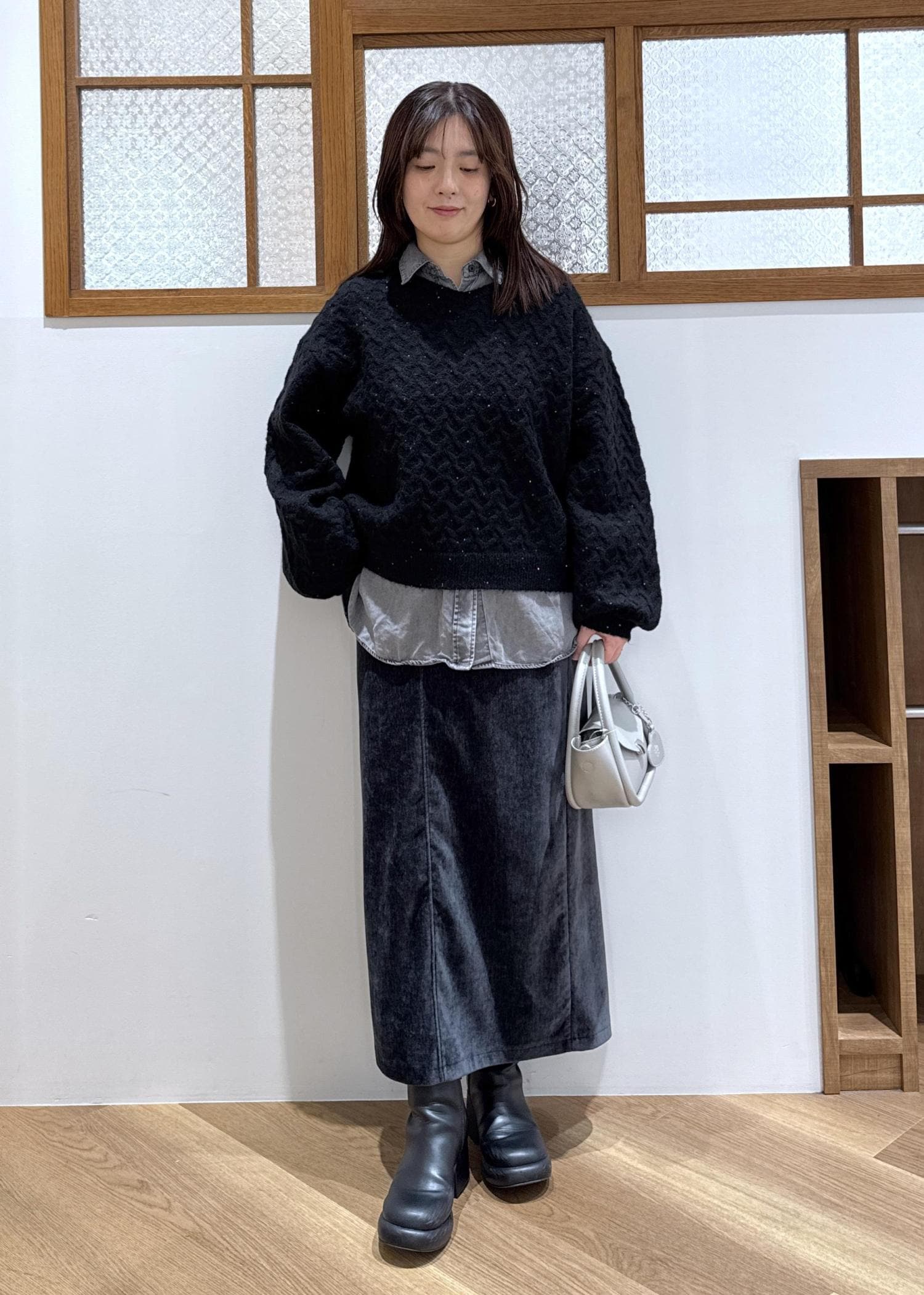 ROPÉ PICNICシェニール織アイラインスカートチャコール / M¥6,490レビューベロアみある起毛感と微光沢な質感に品があり、カジュアルにもキレイめコーデにもマッチするスカートです。