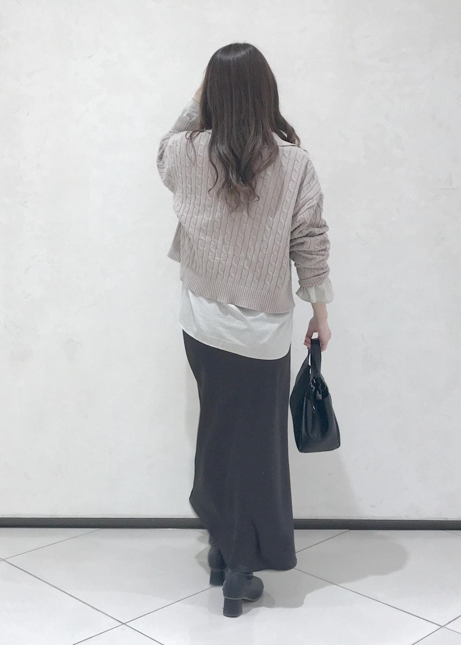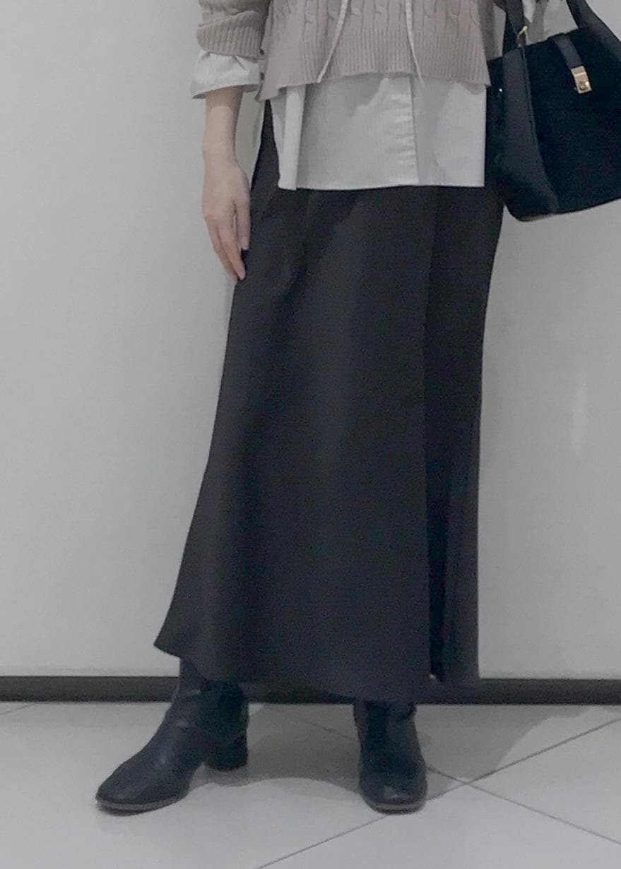 NEW!ROPÉ PICNIC細見えバイアスサテンスカート/イージーケアダークブラウン / F¥6,490レビューウエストが総ゴムで楽です。