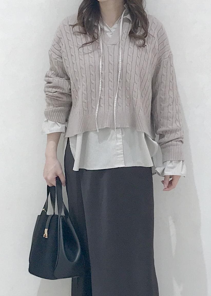ROPÉ PICNIC【BEVERLYHILLS POLO CLUB・新色追加】ケーブル編みクロップドスキッパーニットベージュ / F¥5,995レビューフリーサイズで身幅はゆったりで