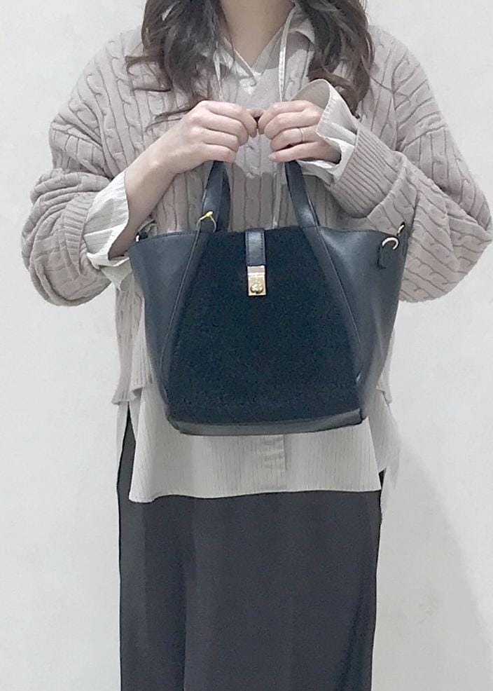 ROPÉ PICNIC PASSAGEme fit BAG ホースヘア調コンビスクエアフォルムバッグ/2WAYブラック / F¥3,293レビュー肩掛けショルダーも付いています。
