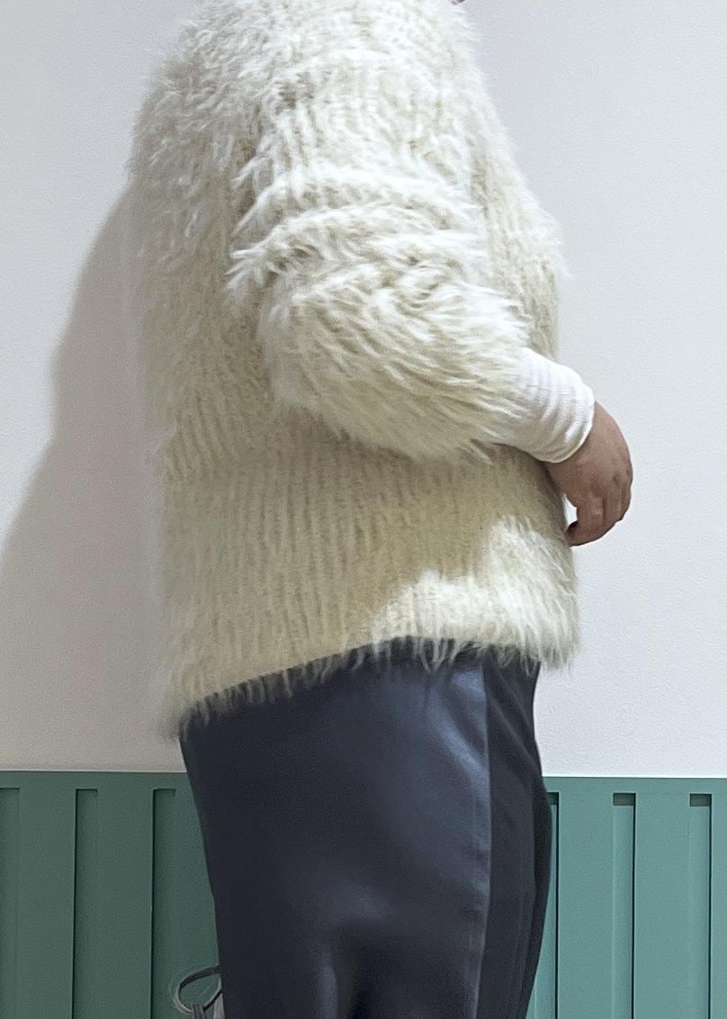 ニットのボリューム感をスカートでバランスをとって。