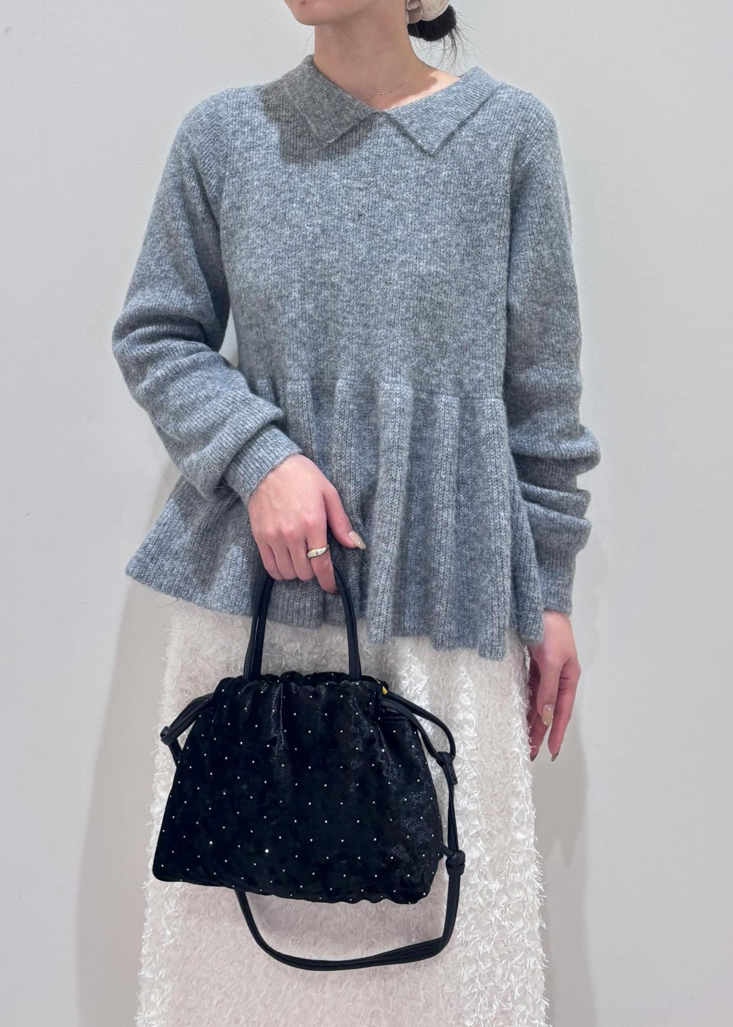 アンゴラ混ペプラムニット