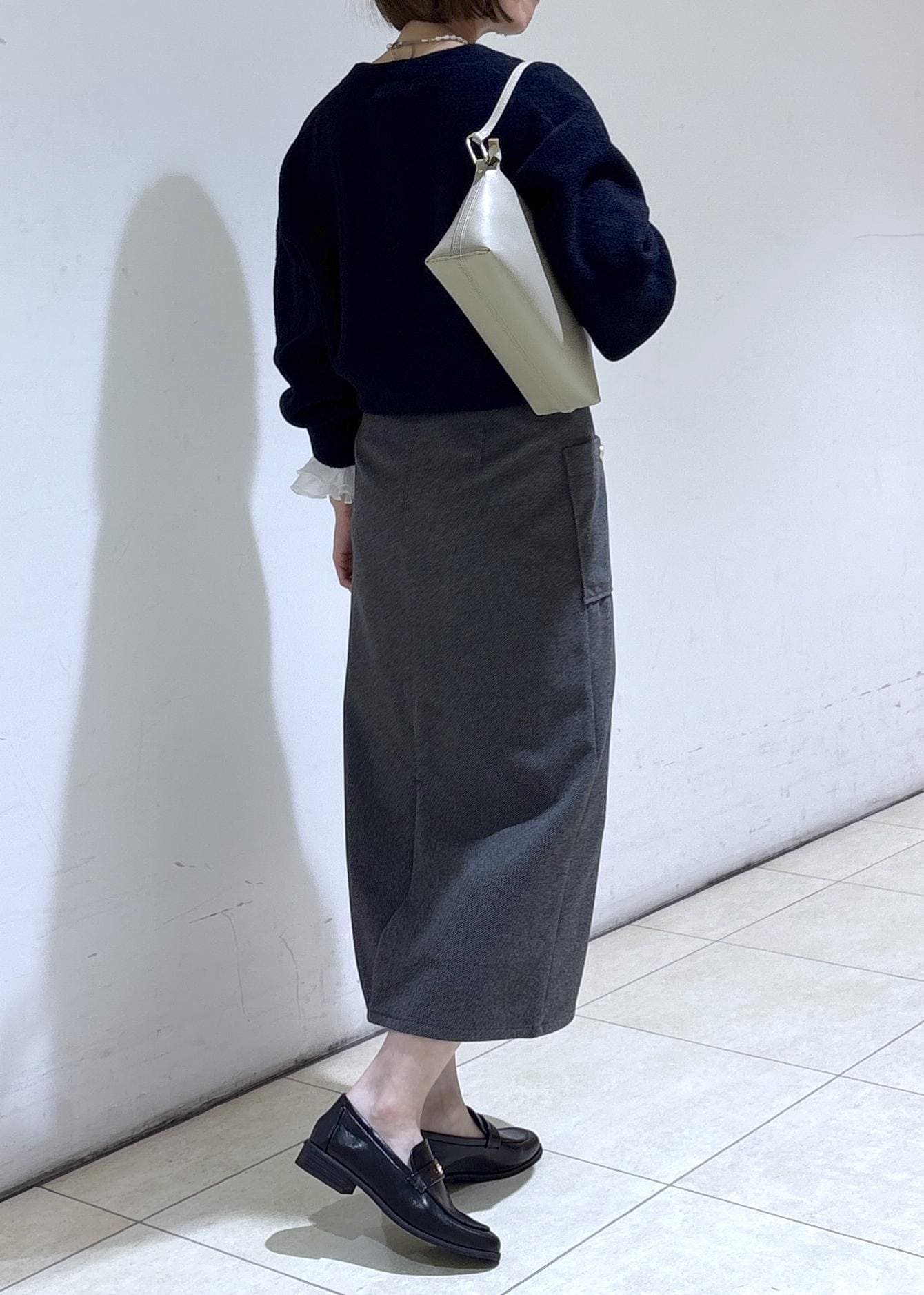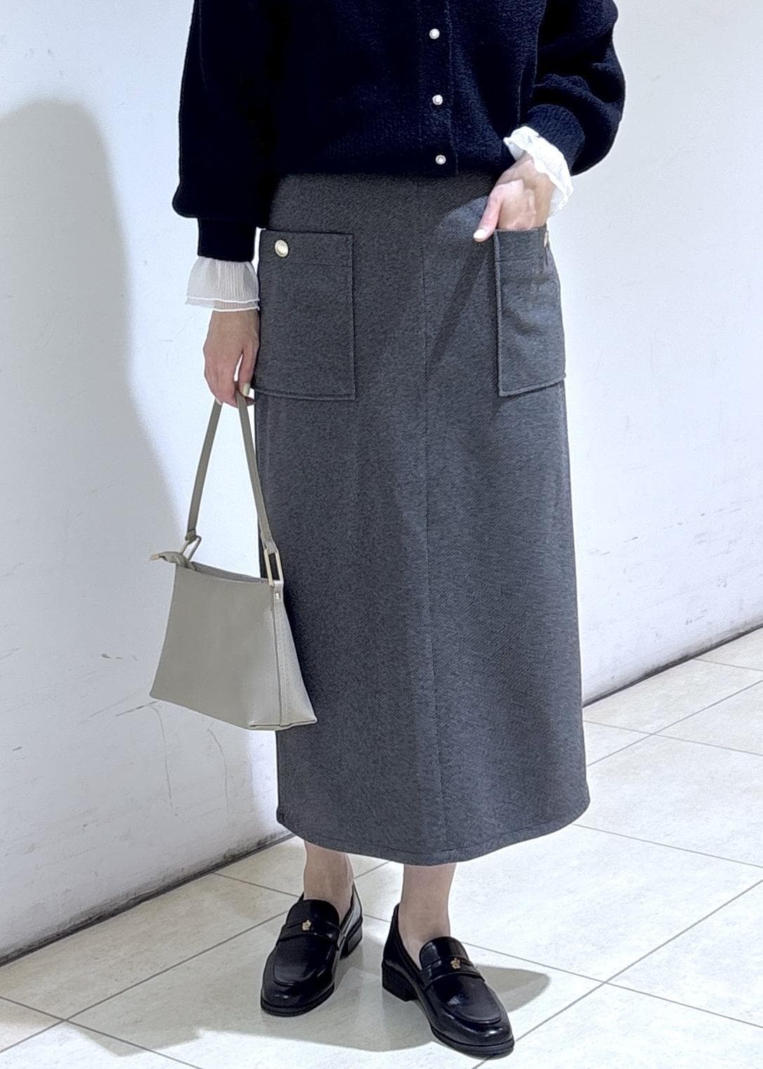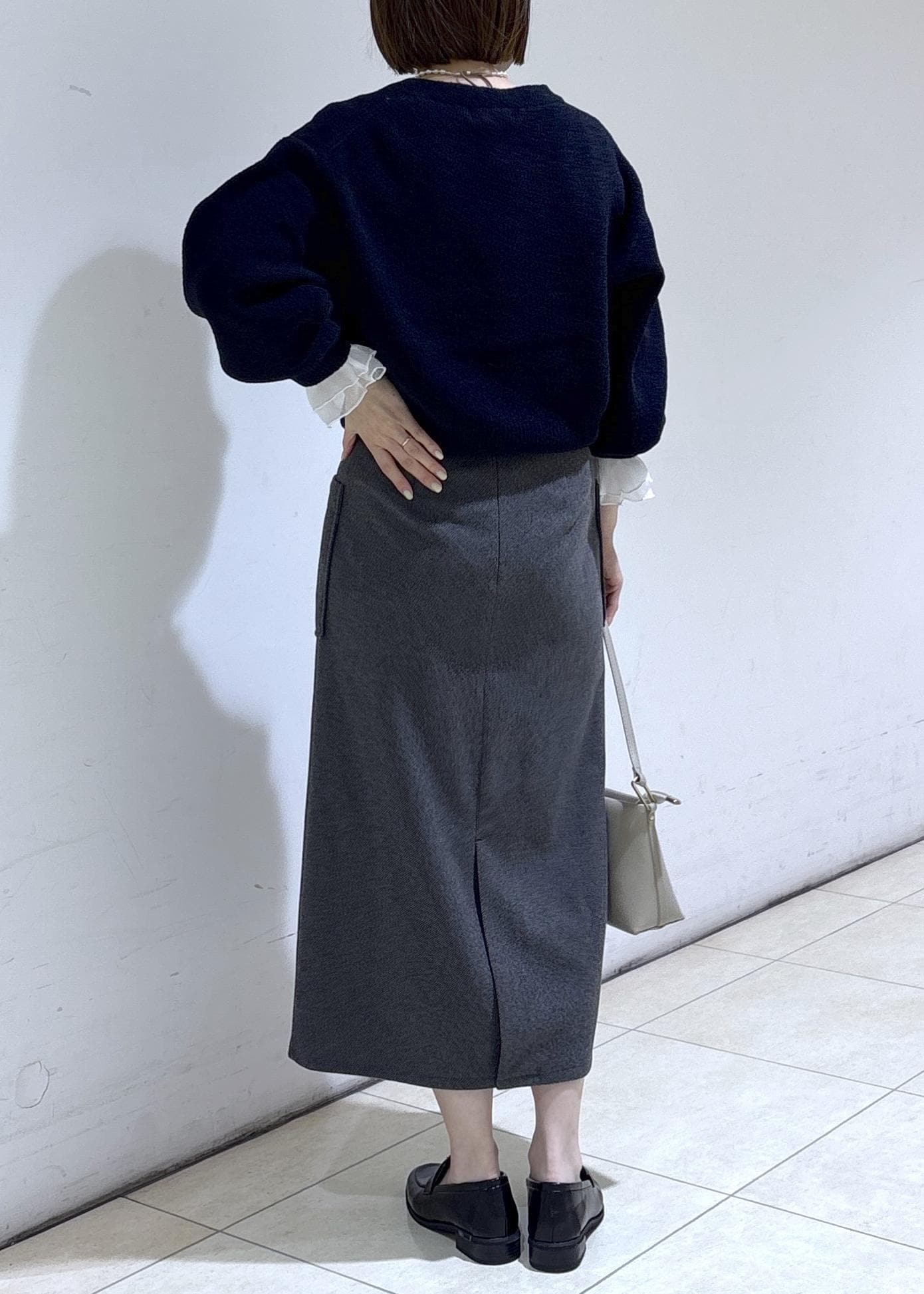 後ろスリットが入っているので脚さばきしやすいアイラインスカートです。
